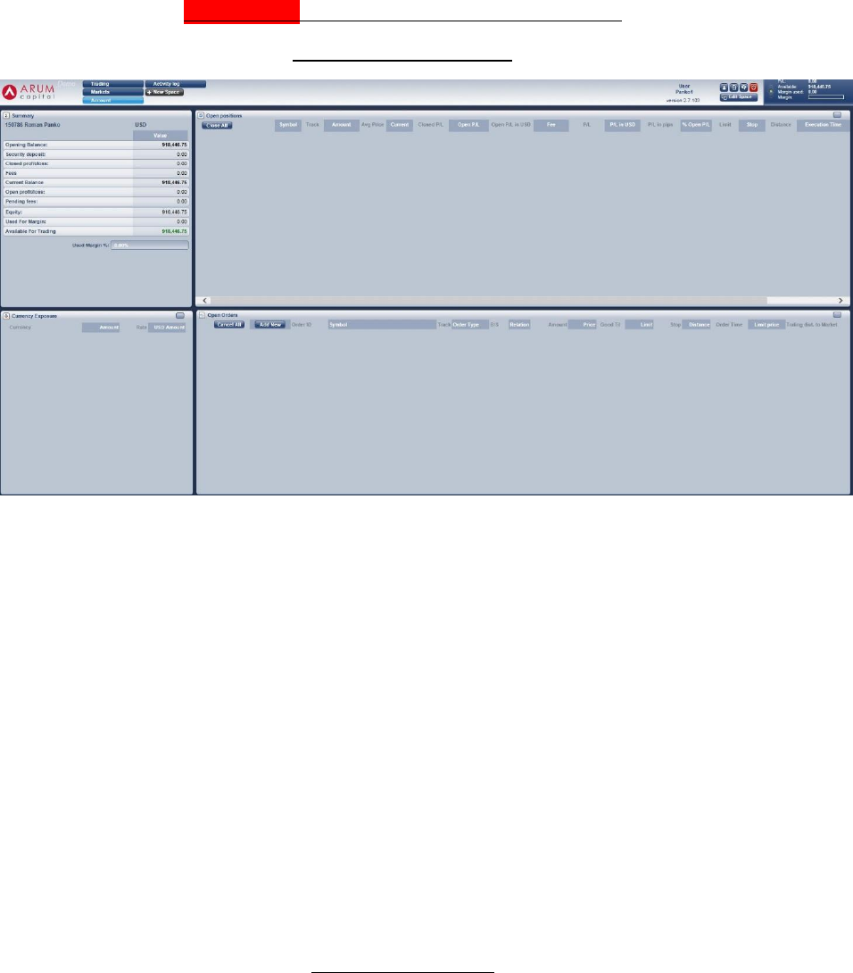 separate Account section which allows for the monitoring of a Client’s trades, orders, exposures and