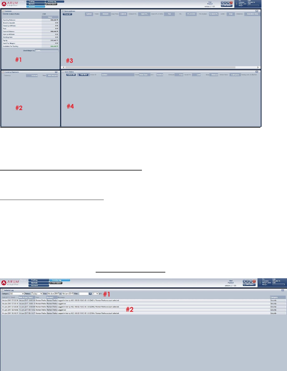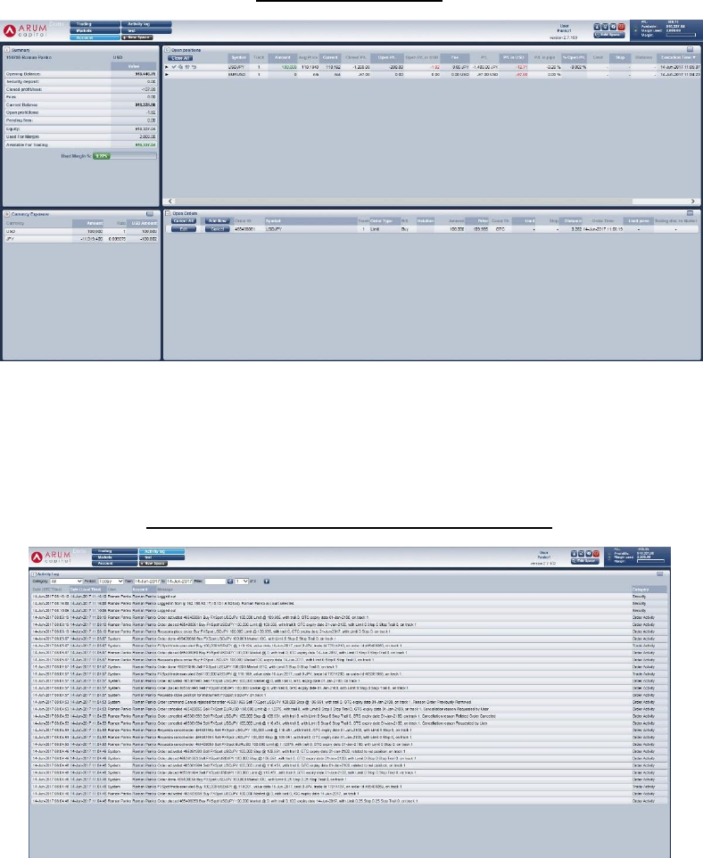 Fig. 1 & 2 – Currency Exposure and Account Summary - This section allows for the monitoring of the