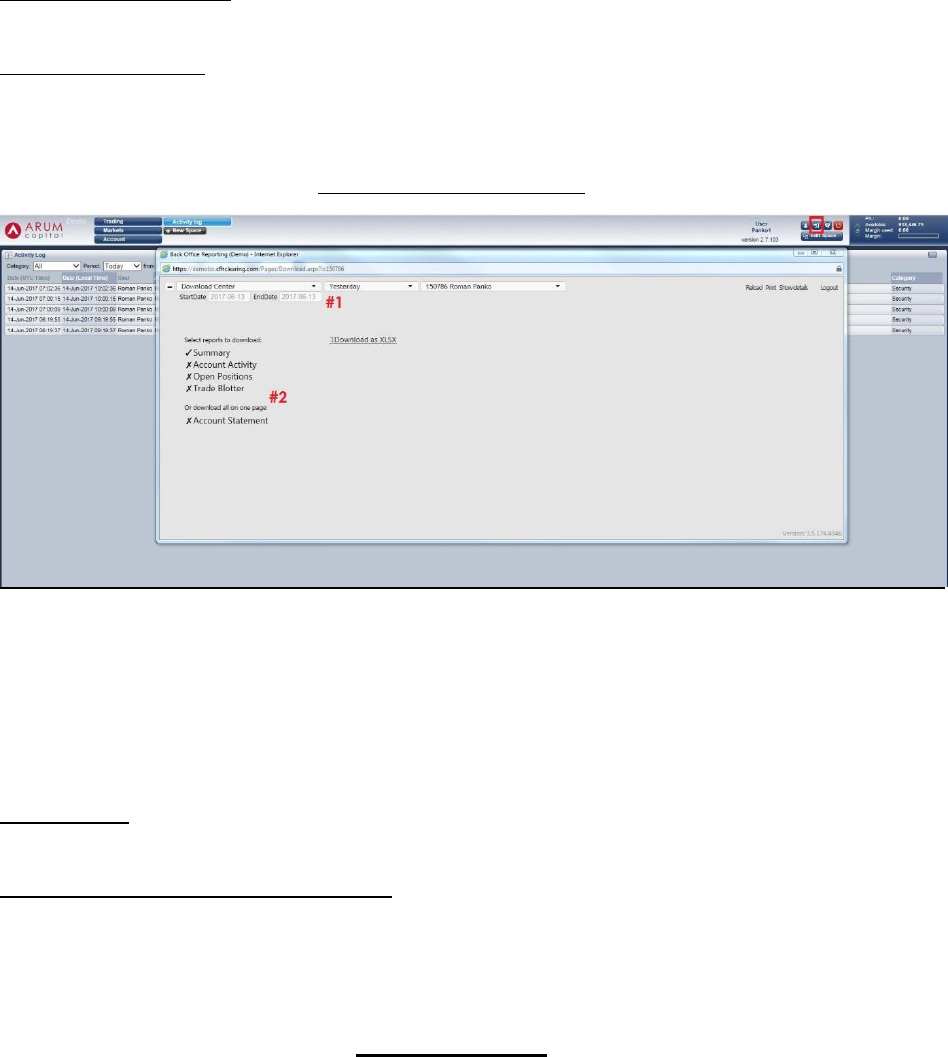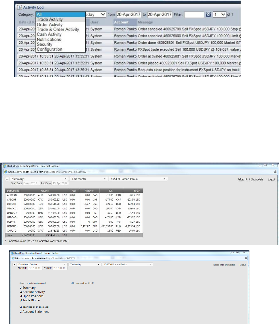 reports regarding their trading account – Summary, Account Activity, Open Positions, Trade Blotter –