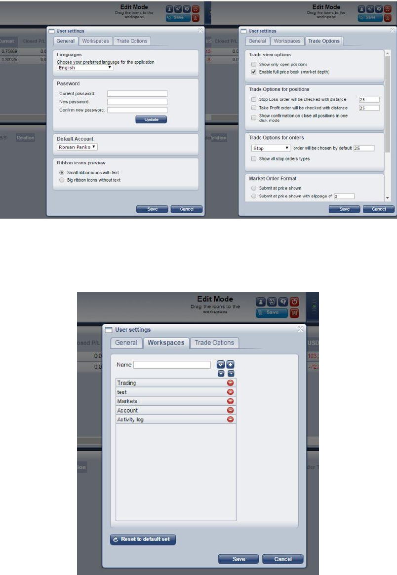 sections (labeled ‘spaces’), albeit set out slightly differently – the Trading section, the Markets