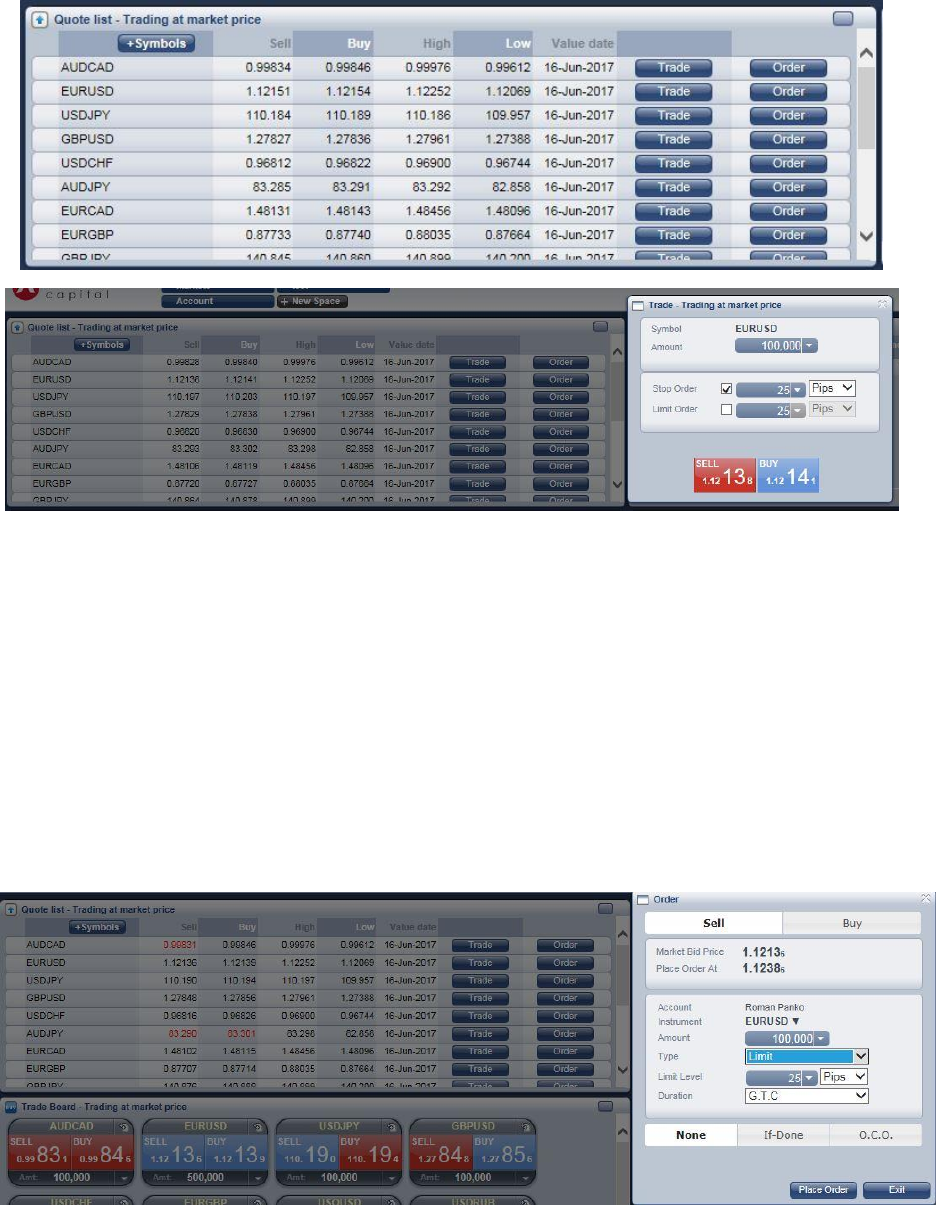 Client’s chosen instruments. Placement of trades and orders is also available through the Buy, Sell