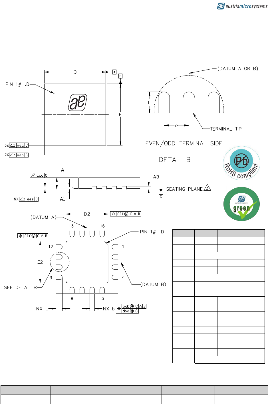 Note: All products are RoHS compliant and austriamicrosystems green.