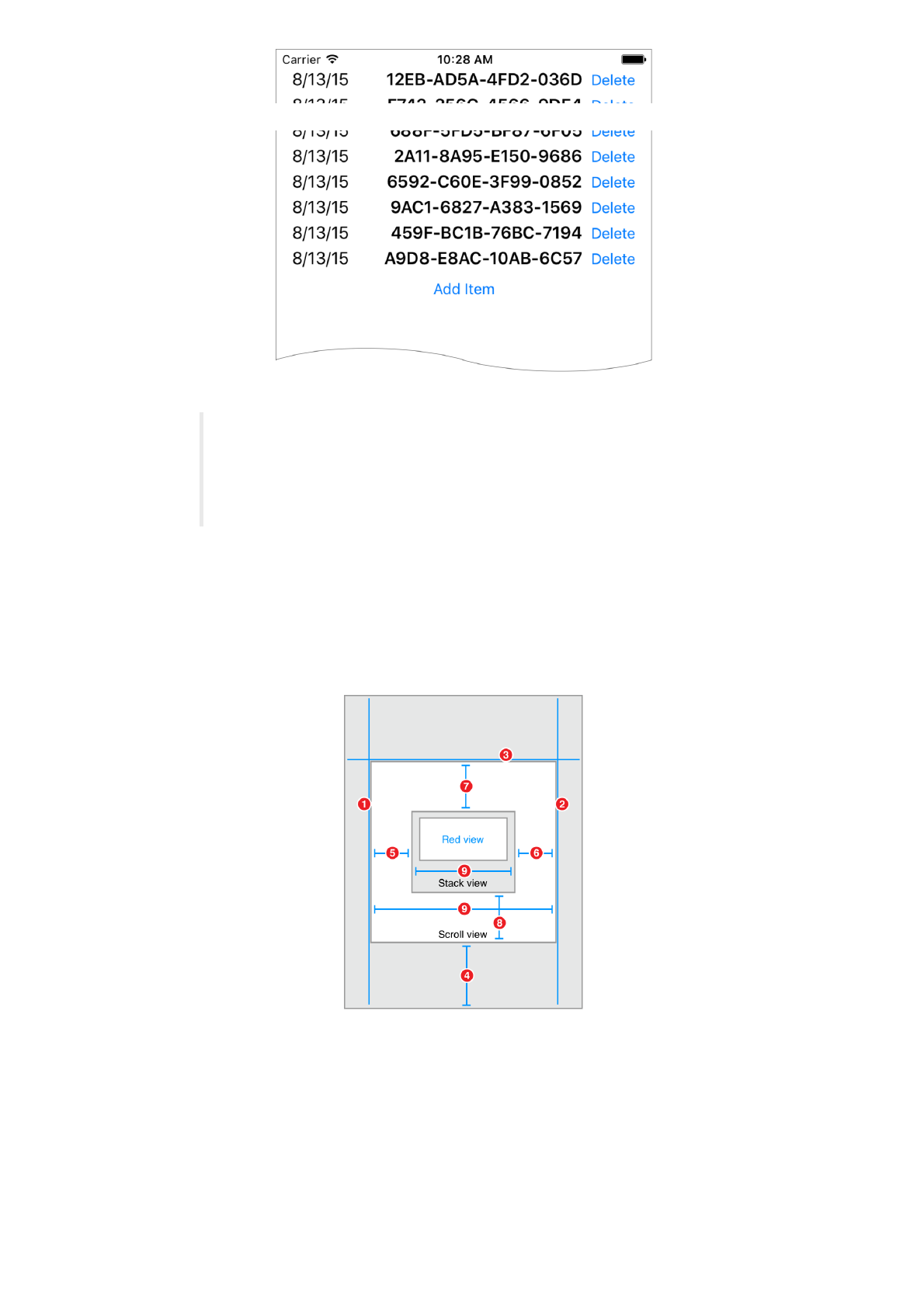 This recipe also introduces the idea of using Auto Layout with scroll views. Here, the constraints between the