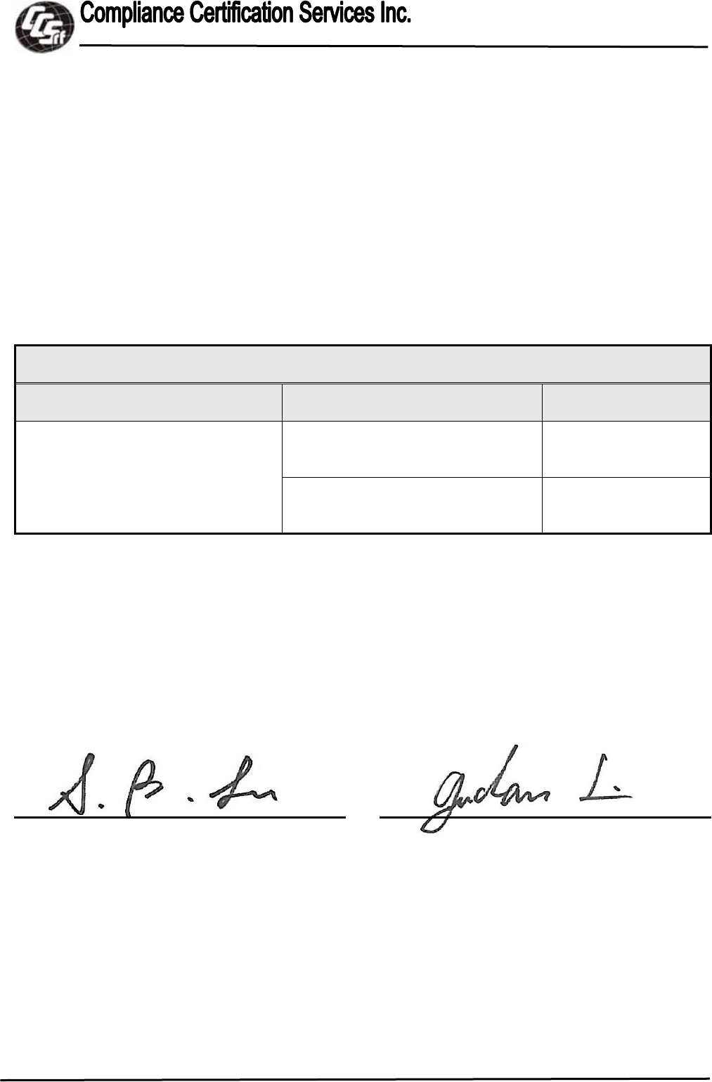 Note: This report shall not be reproduced except in full, without the written approval of Compliance Certification