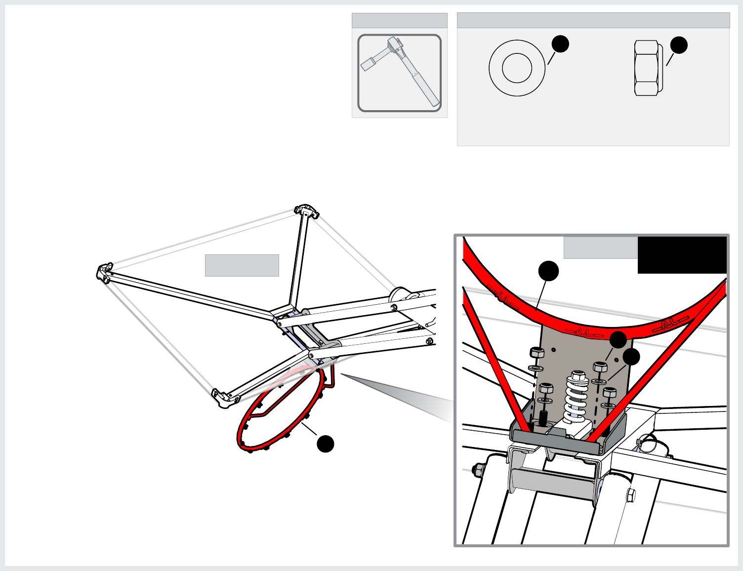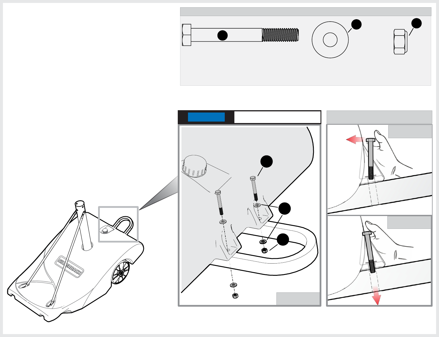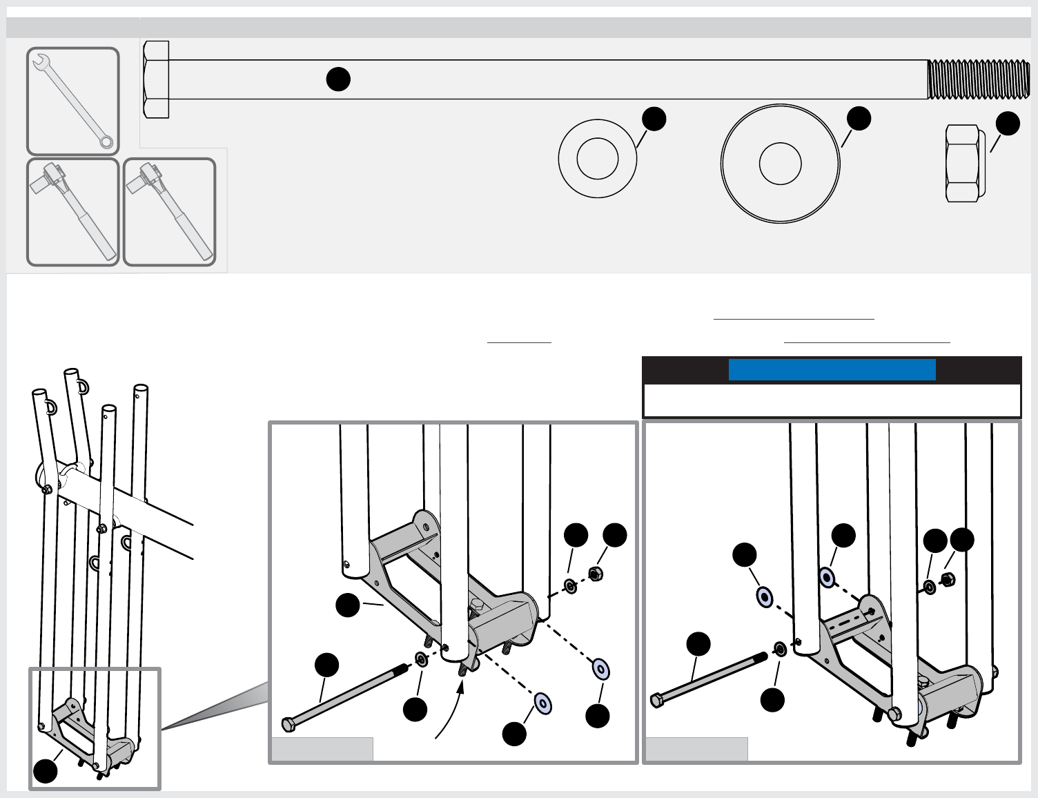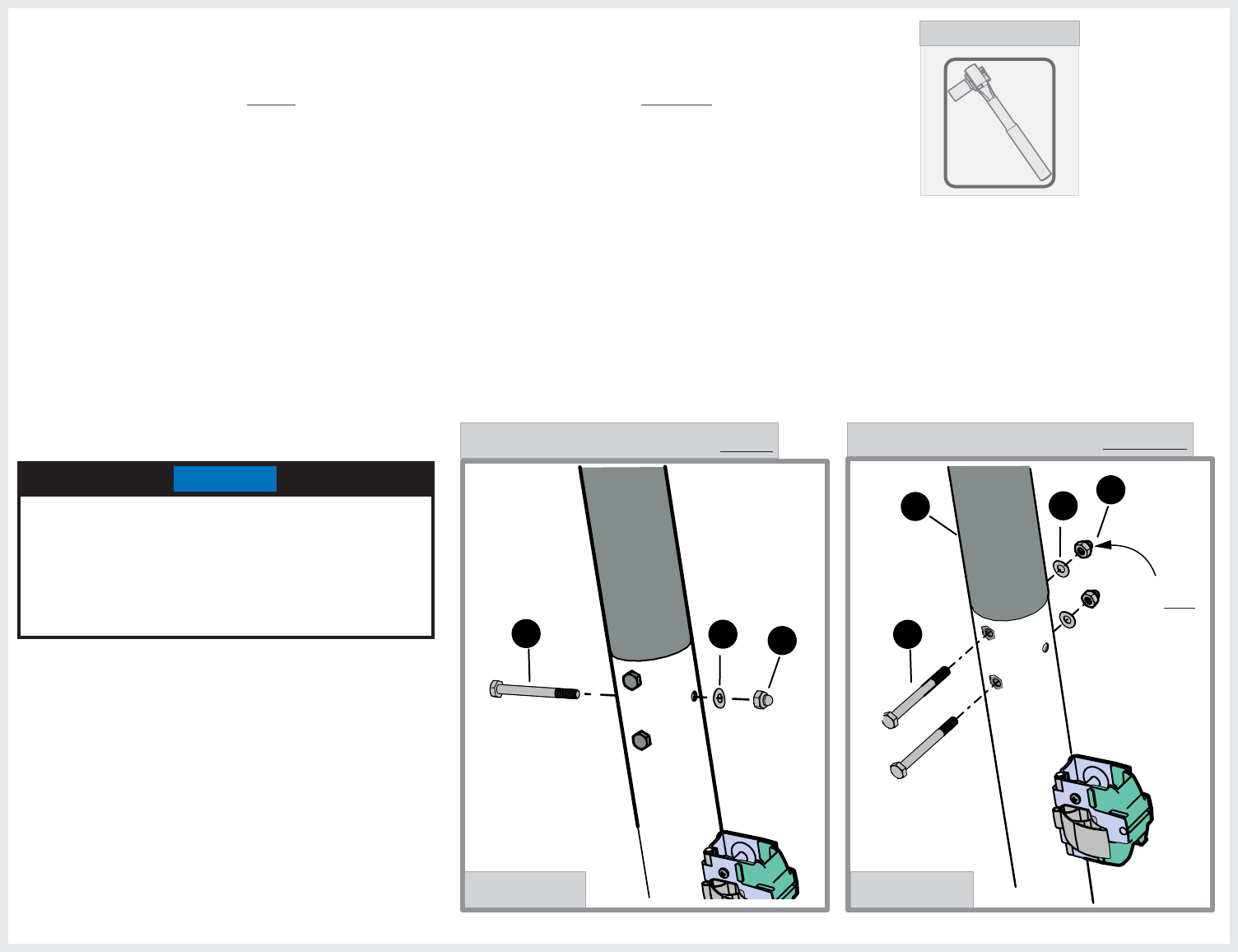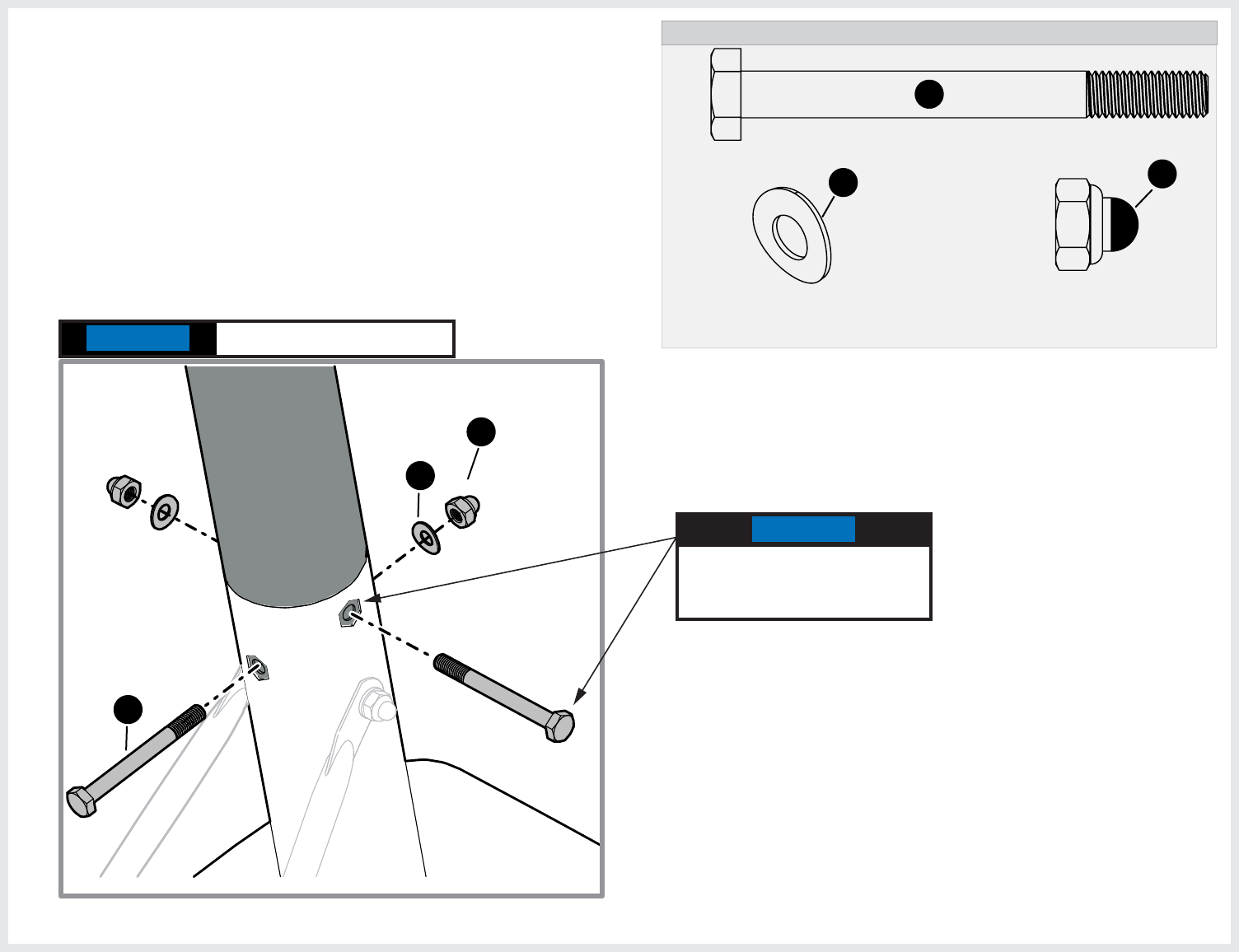 4. Do not tighten hardware until instructed to do so. If hardware is tightened too soon, mounting holes may not align and
