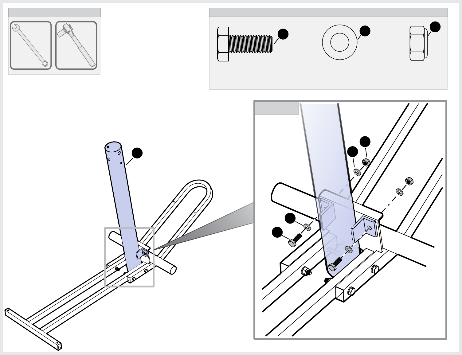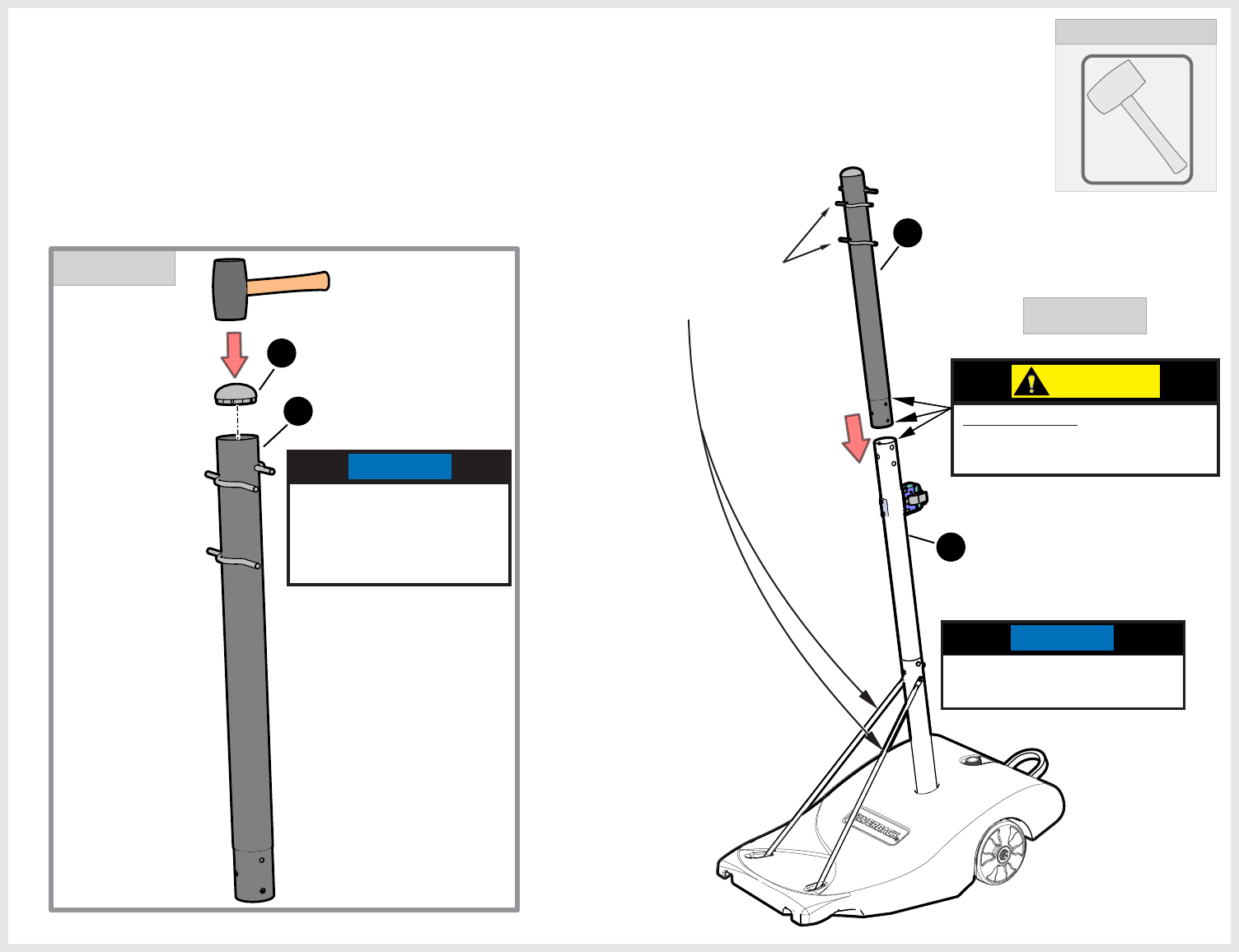 !Assemble the pole sections properly (if applicable). Failure to do so could cause pole sections to