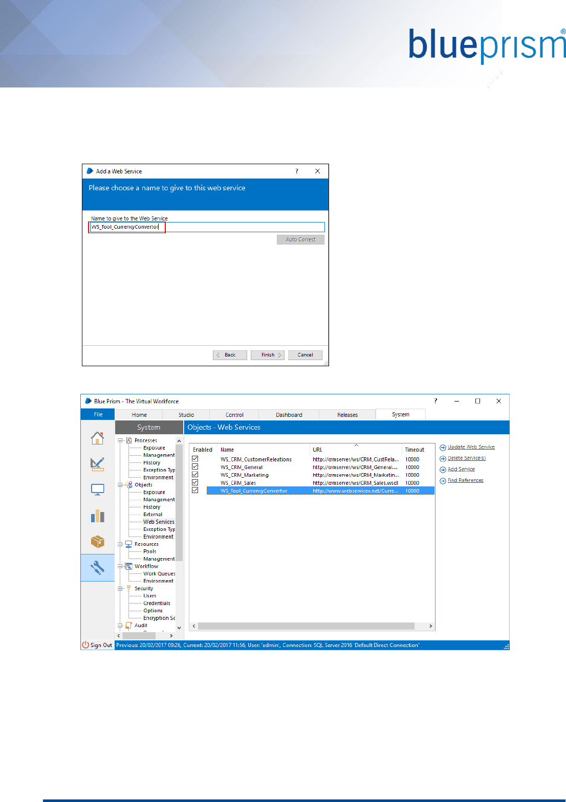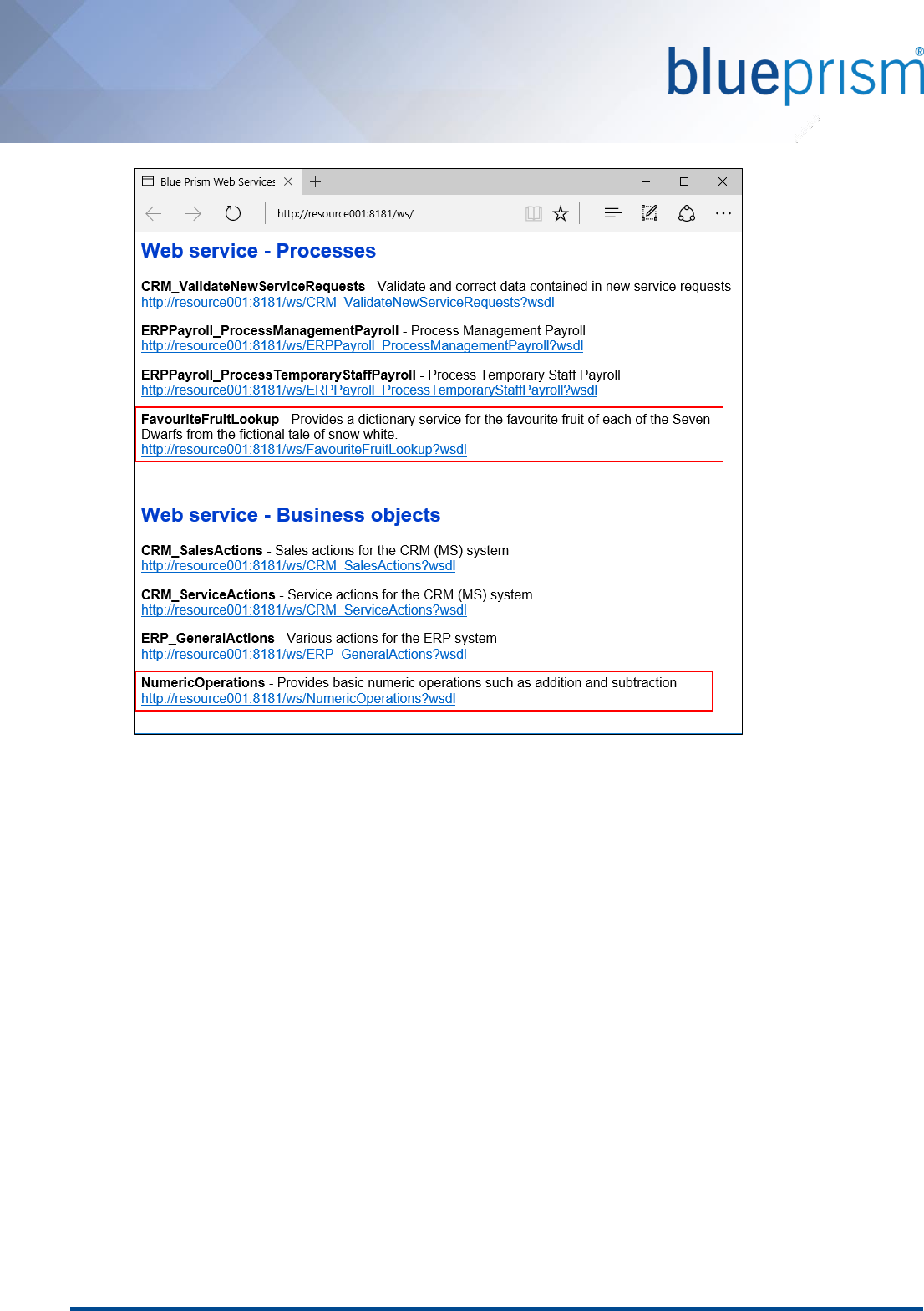 these web services to utilise the power and flexibility of Blue Prism for a number of purposes: