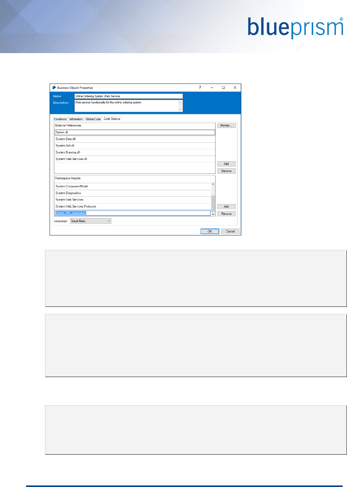 Consuming third-party web services in a Blue Prism Business Object or Process.