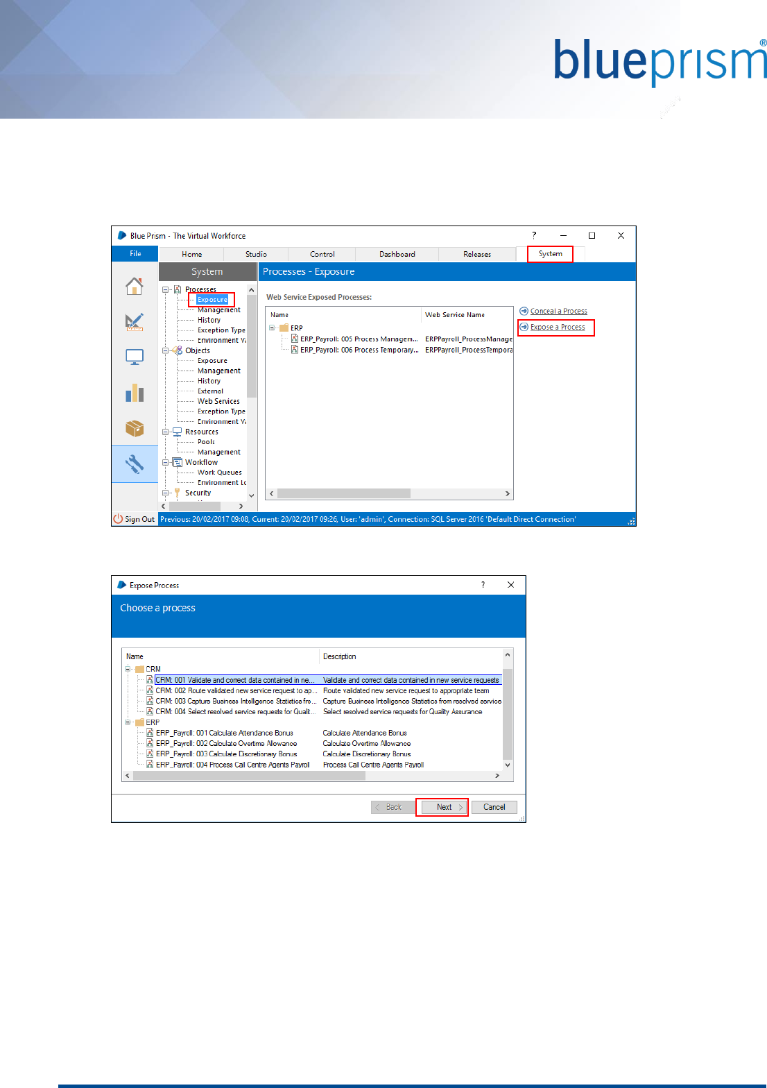 Through exposing the Blue Prism Business Objects and Processes, third-party systems and developers can invoke