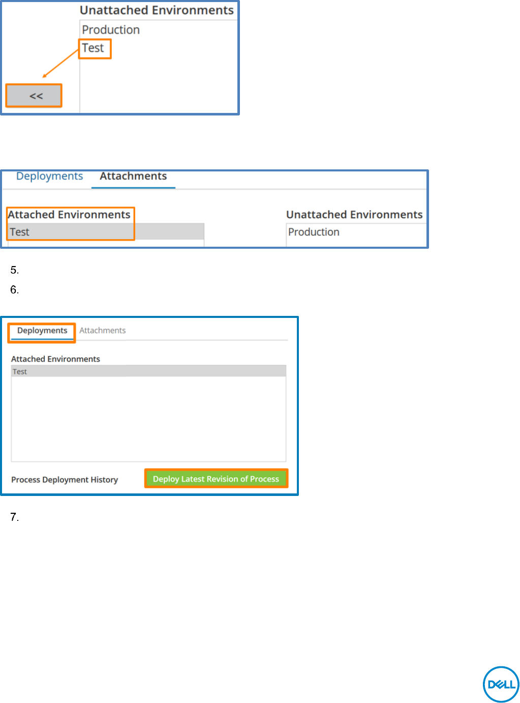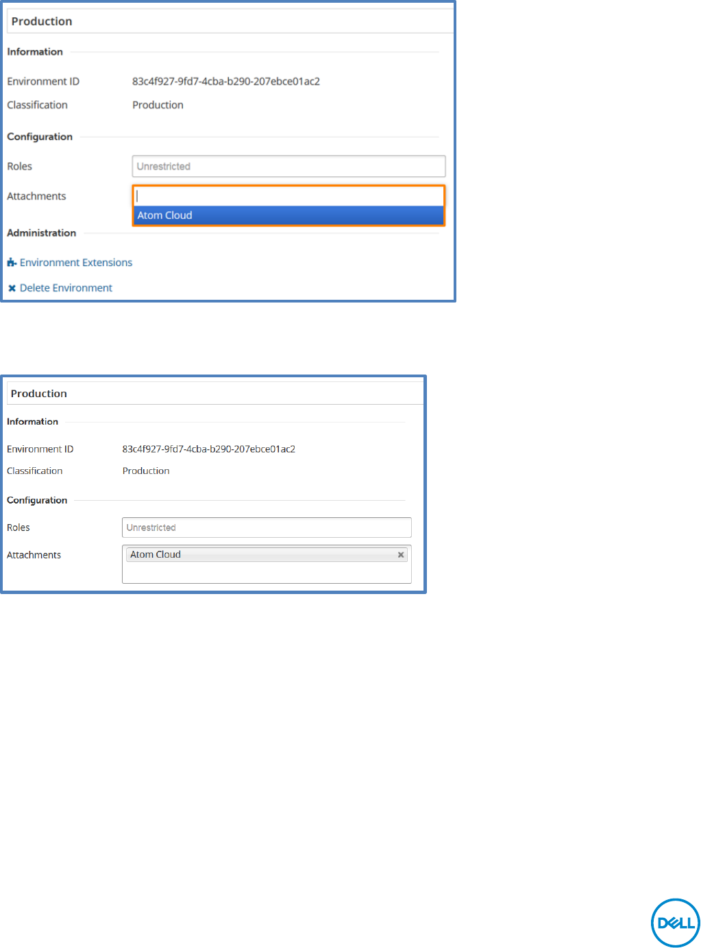 This moves the Production environment from the Unattached pane to the Attached pane.