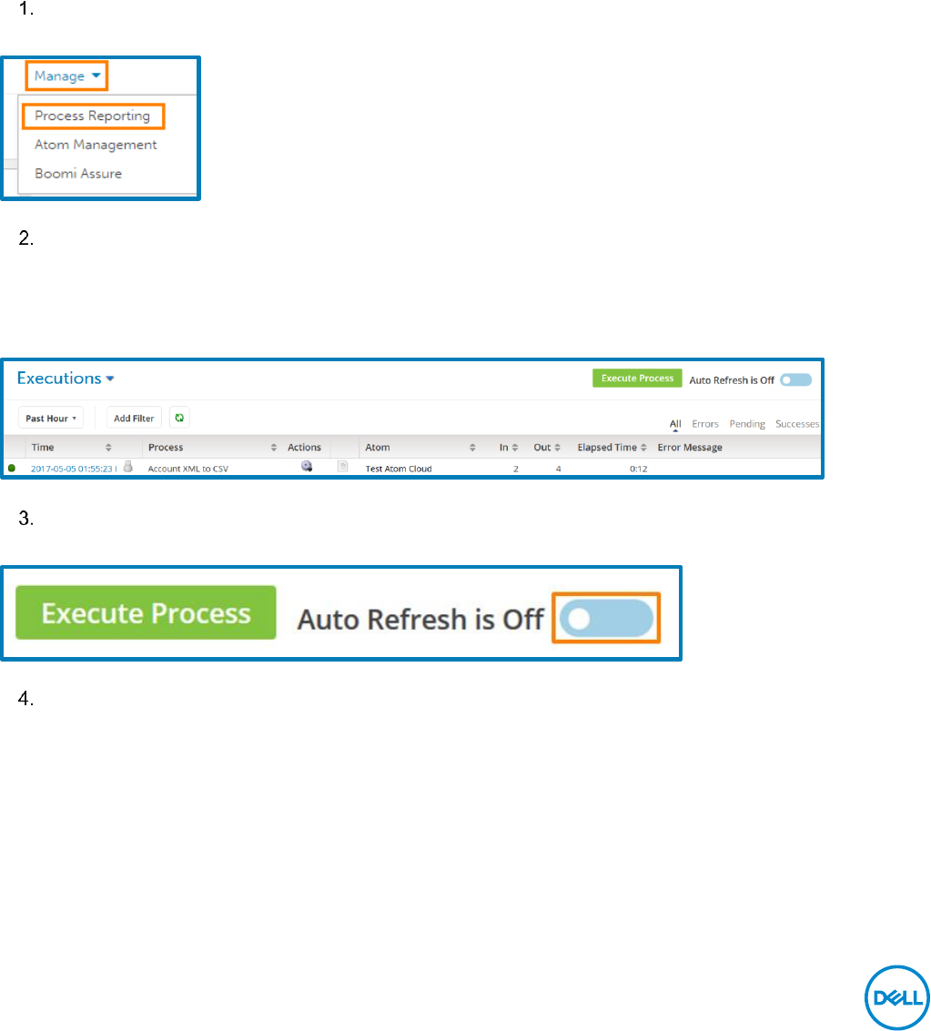 recent executions of all deployed processes on your account. You also can manually execute