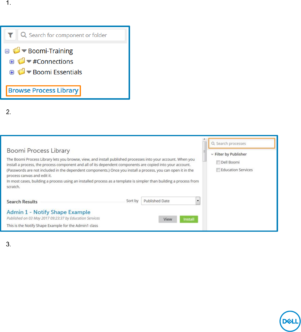 Process Library has various types of pre-built processes to install to complete an integration