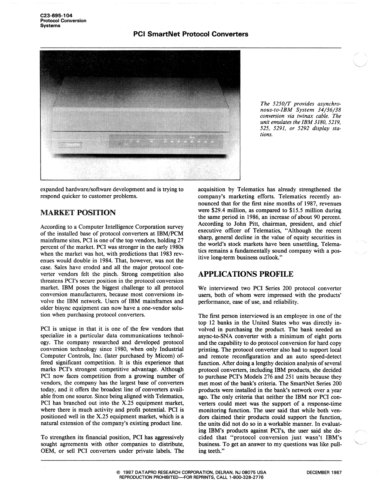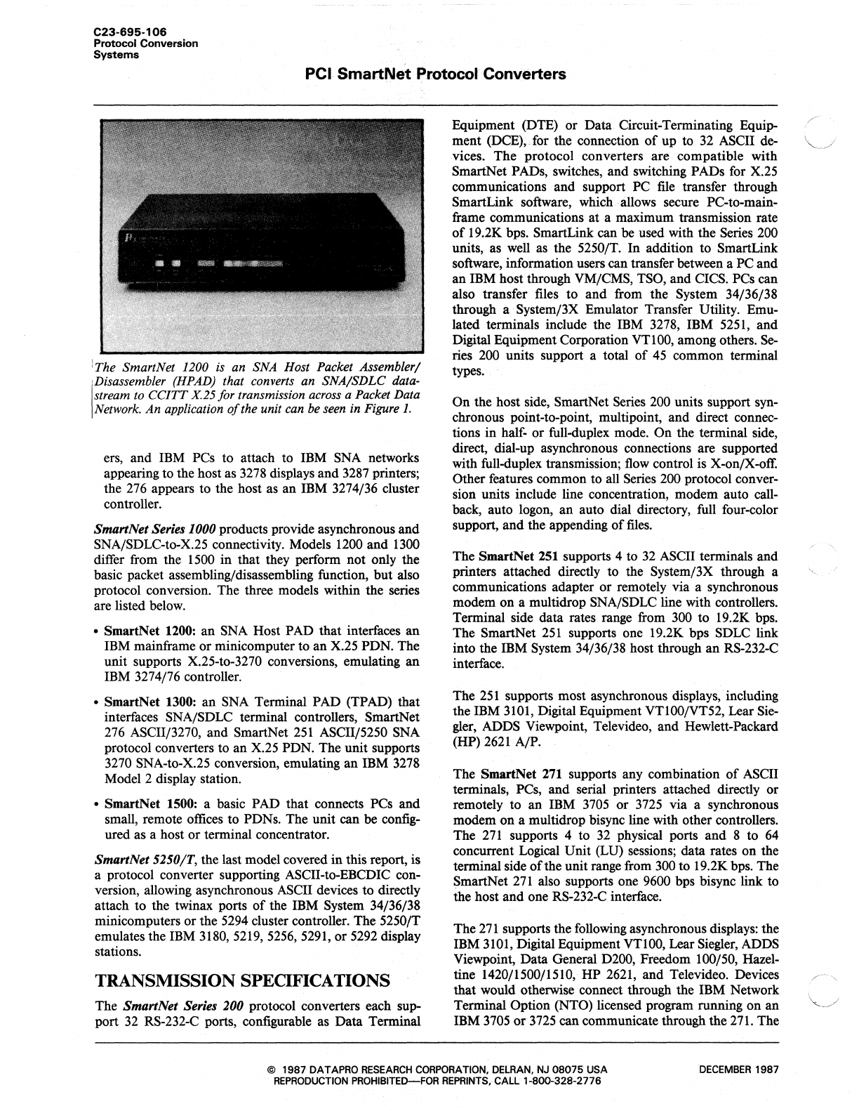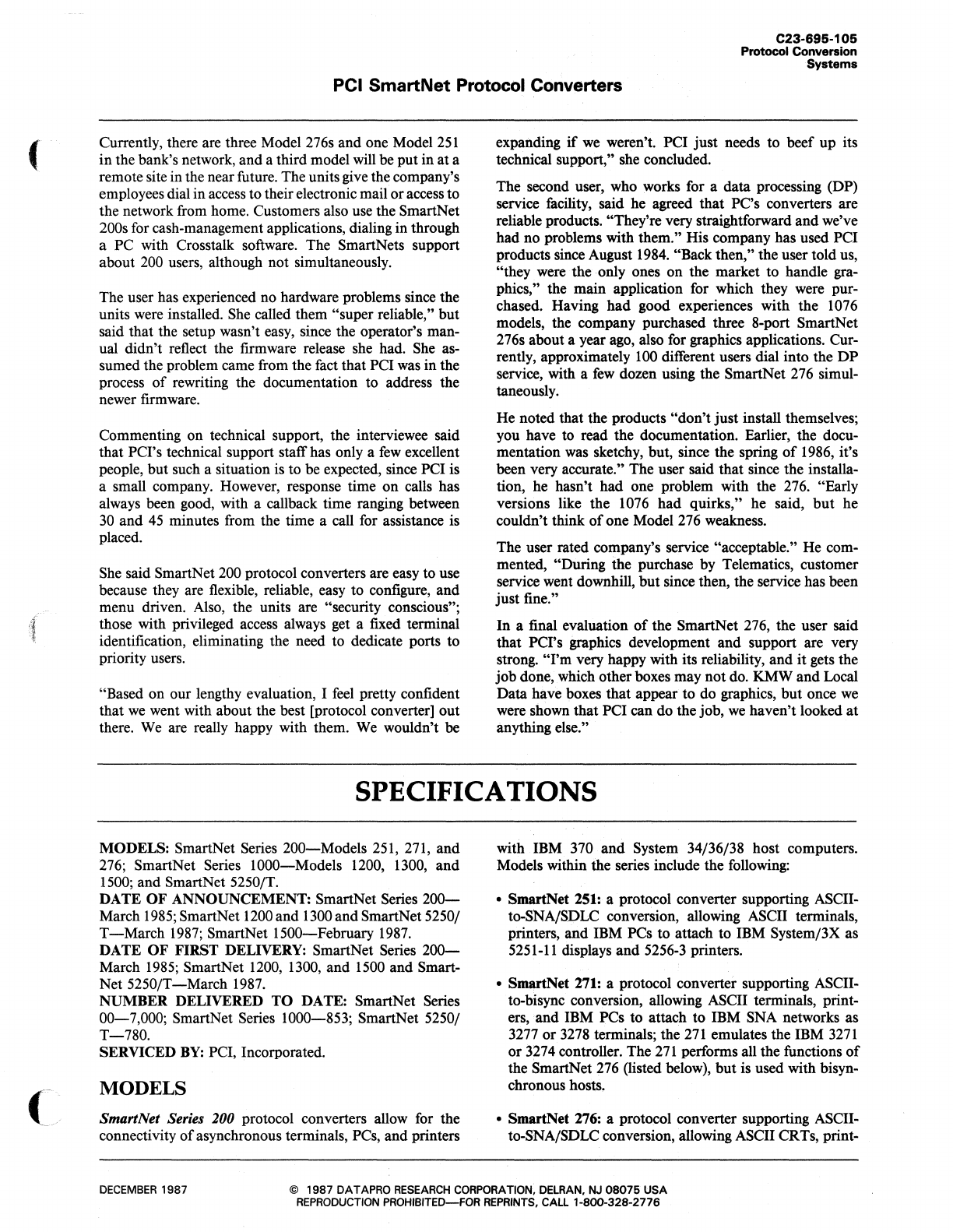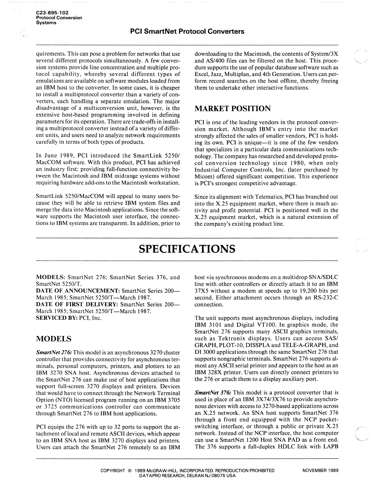 PC/'s SmartNet 276 is an ASCII-to-SNA 3270 protocol con-