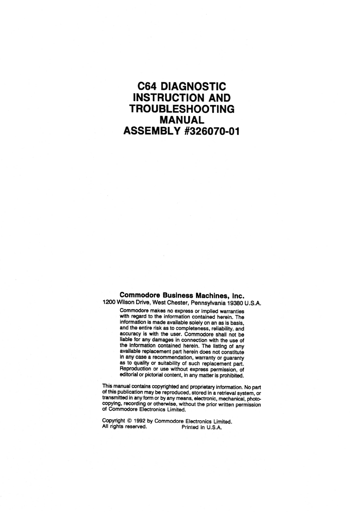 C64 Diagnostic Instruction And Troubleshooting Manual