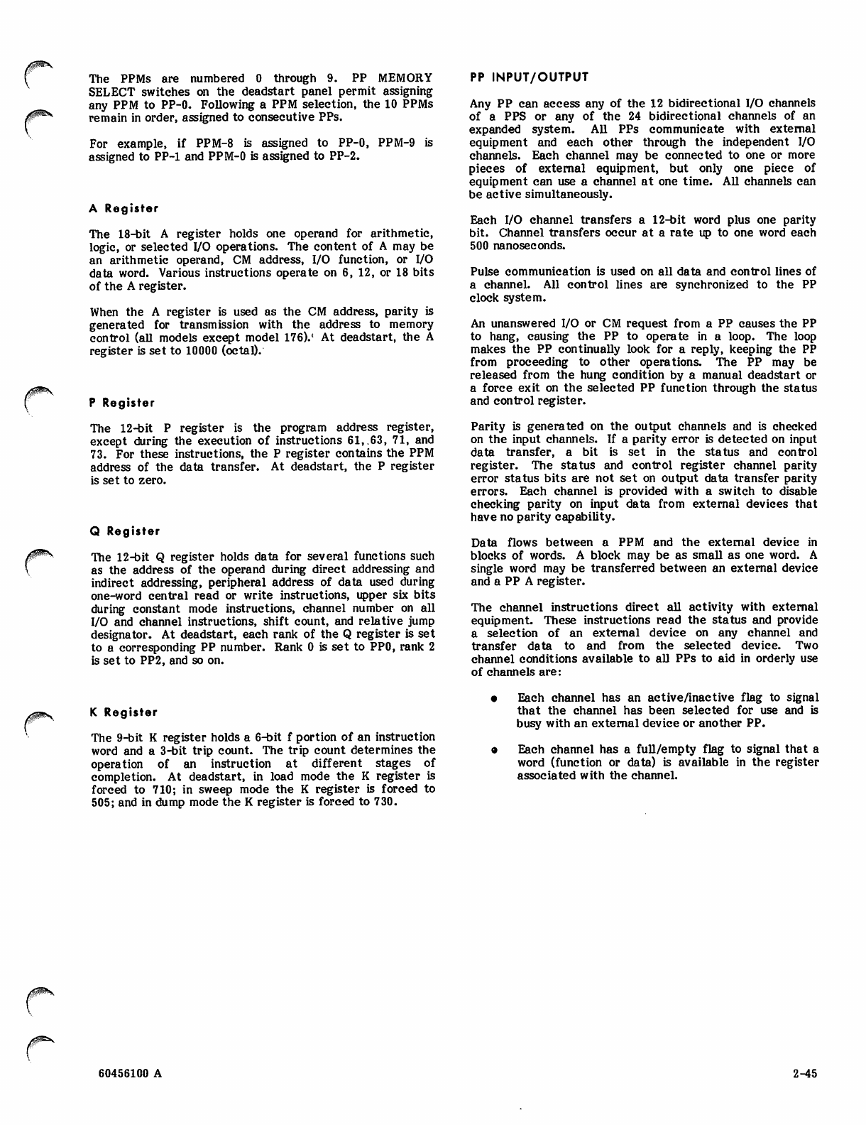 Manual revised; includes Engineering Change Order 39945 (moved I/O channel parity switches from I/O