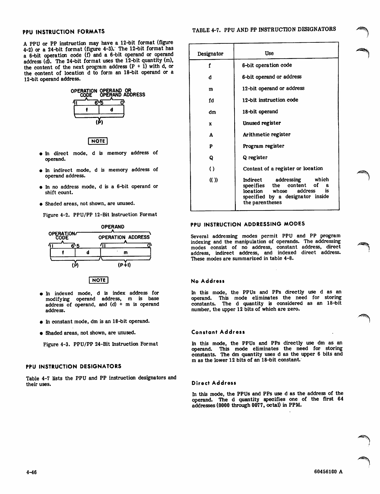 Instruction format CP: 4-3; PP: 4-46; PPU: 4-46