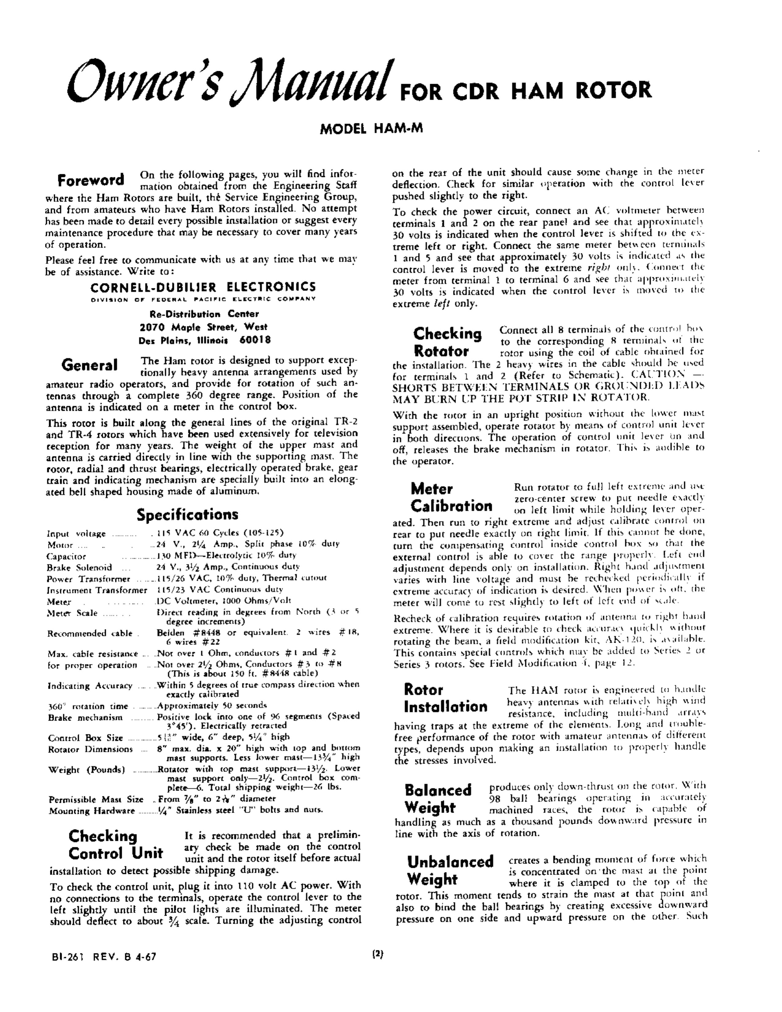 CDE HAM M Rotator User Manual+sch Manual Sch