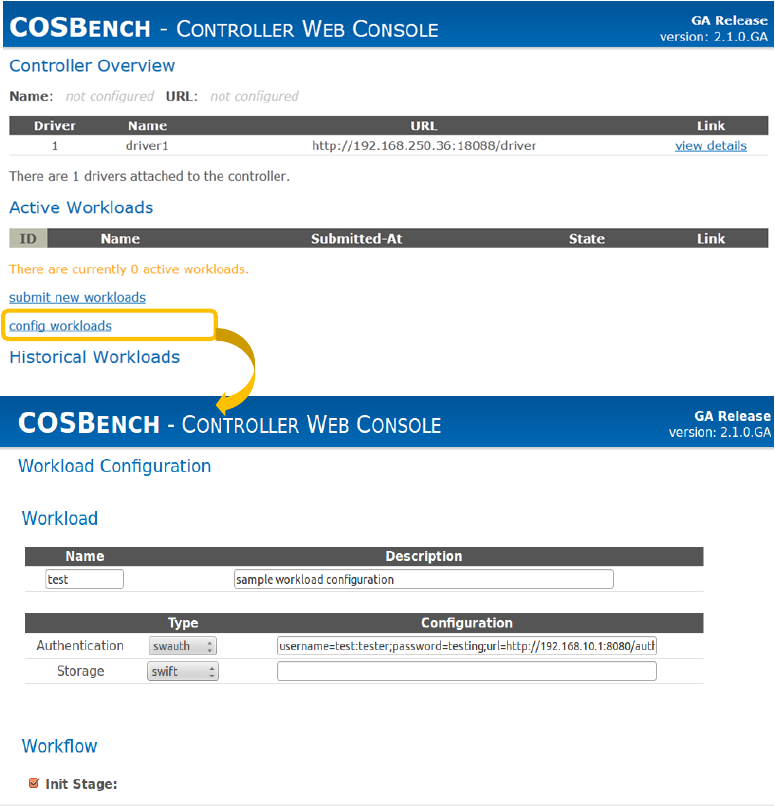 workload configuration follows S3 or Swift’s configuration rules.