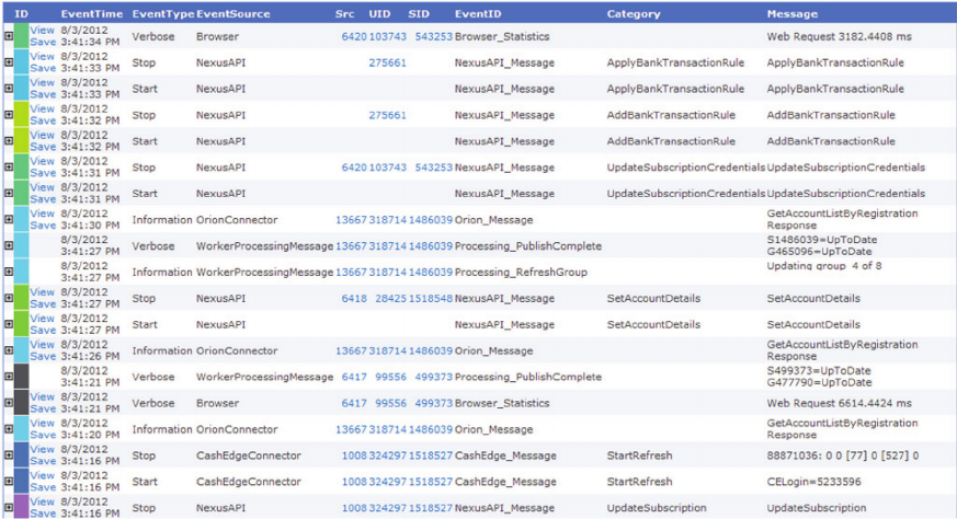 Windows Azure table storage-based event store, 120-121