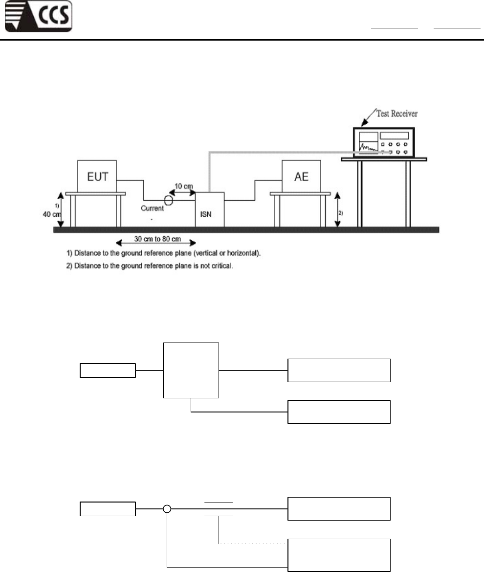plane of the shielded room. The Telecom port of EUT is connected to the I.S.N. or C.D.N through