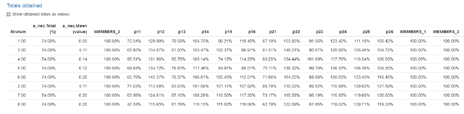proportions of the H-T estimates of totals to known population totals by clicking