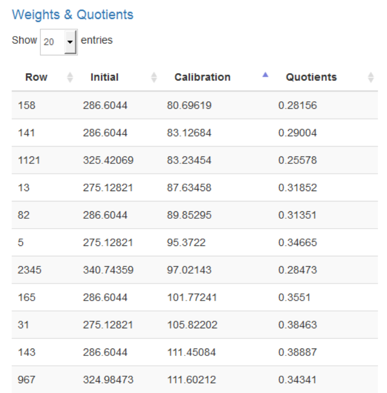 denote the quotients of these weights (known as calibration