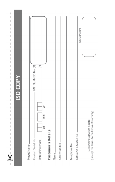 a. The handset IMEl number/ serial number, the accessory date code, water
