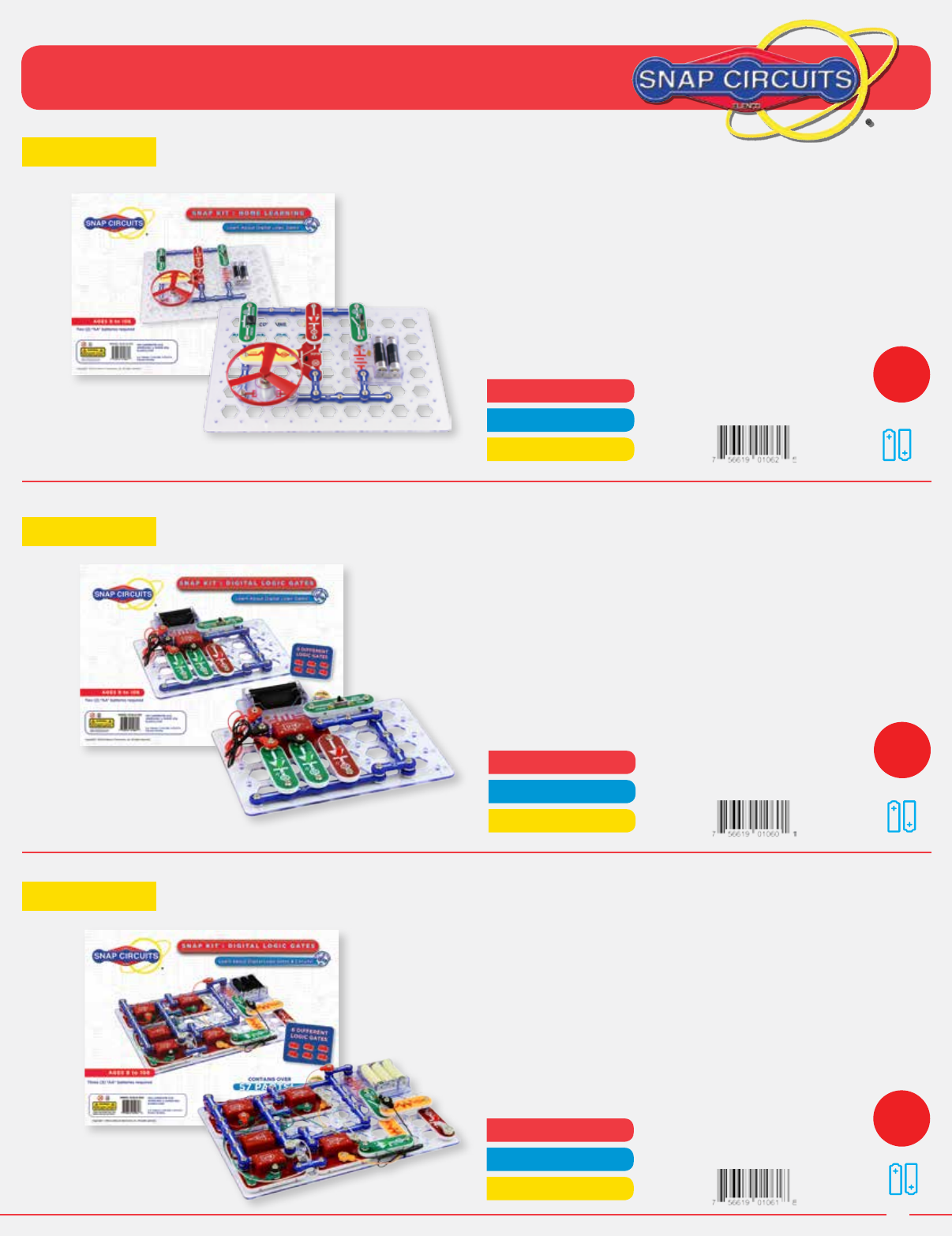 ABOUT SNAP CIRCUITS®: Elenco’s Snap Circuits® makes learning electronics easy and fun! Just follow the colorful pictures in our