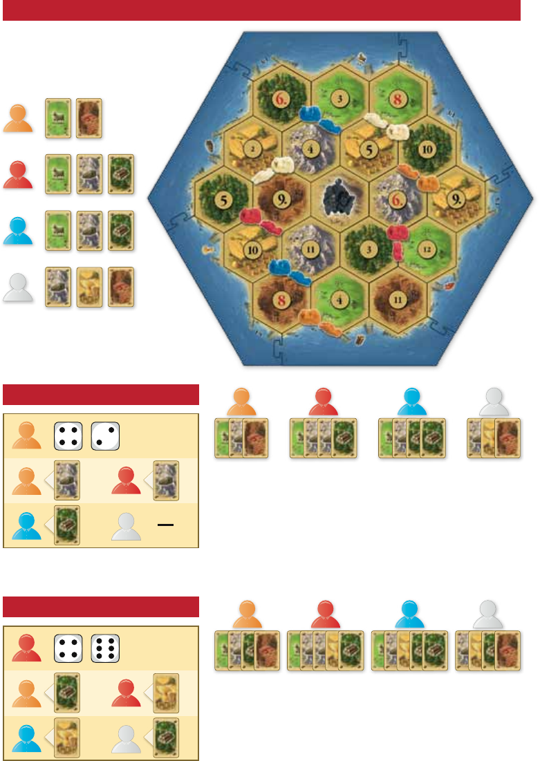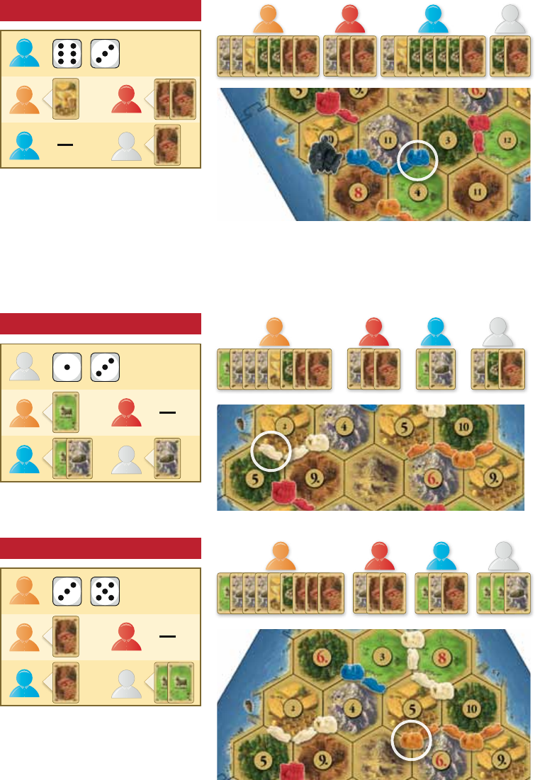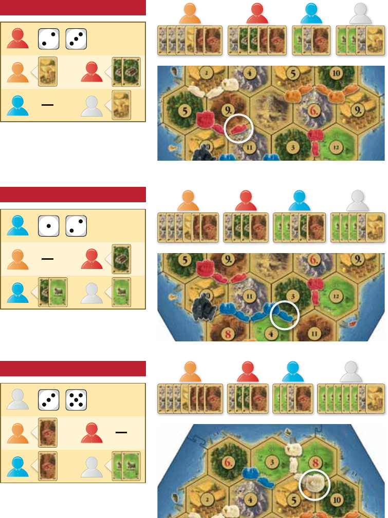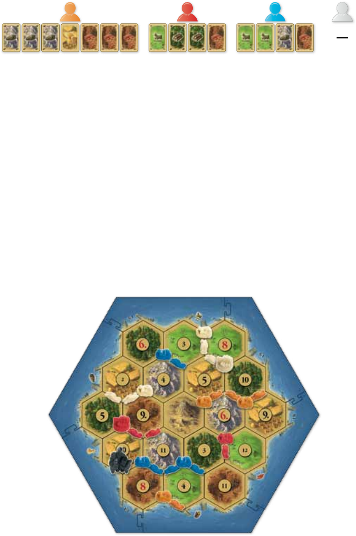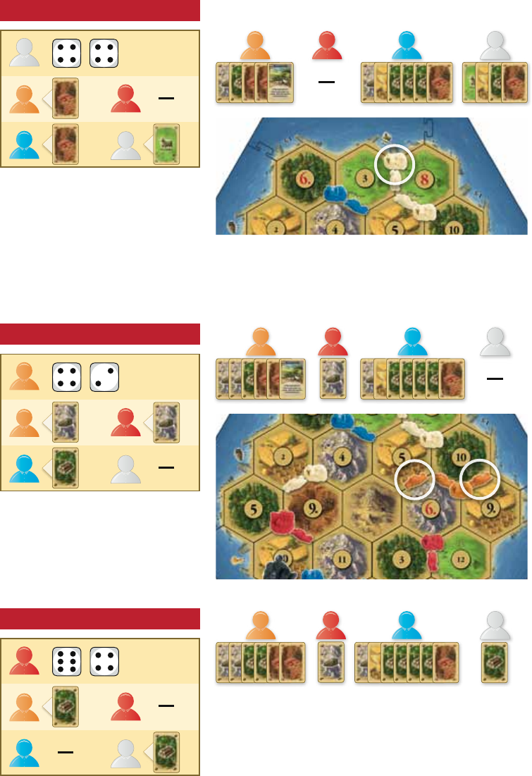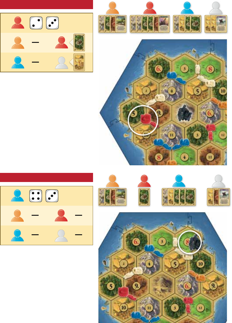 construir en breve 1 poblado. Así pues, el jugador blanco comercia con el jugador rojo 1 de lana a cambio de 1 de mineral. El jugador blanco