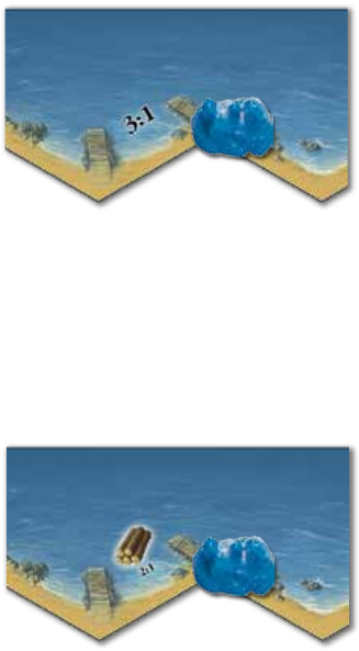 mediante el comercio marítimo (comercio con el banco) por 1 de lana. Pero entonces le faltaría 1 de madera. Por ello pregunta si alguien le