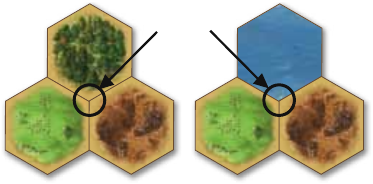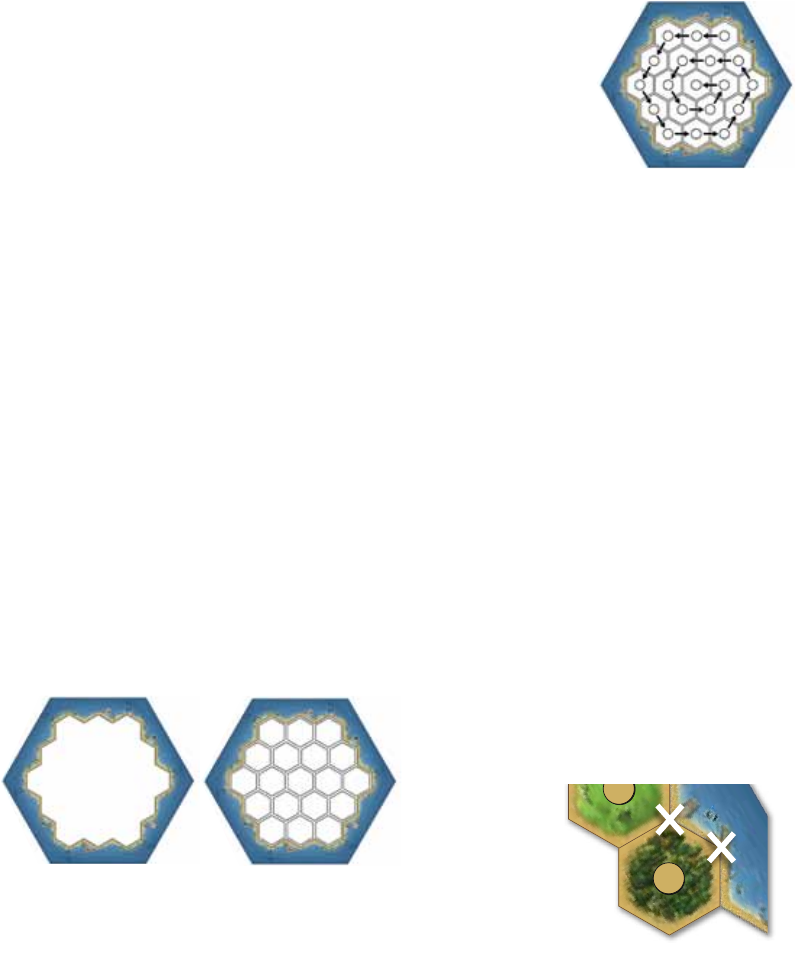 19 hexágonos de terreno: