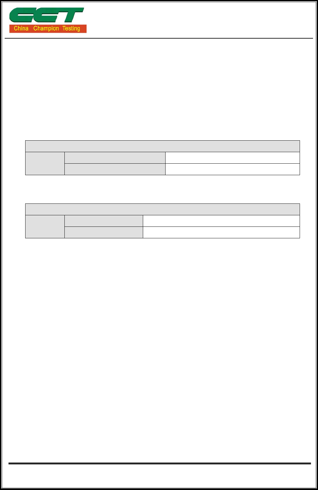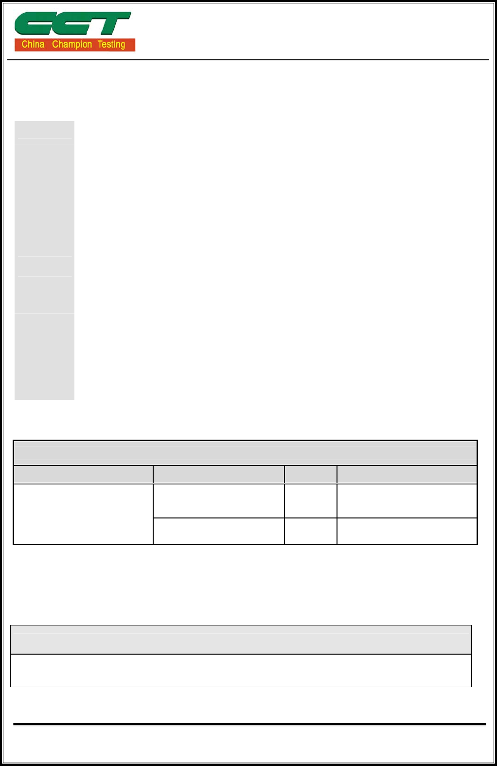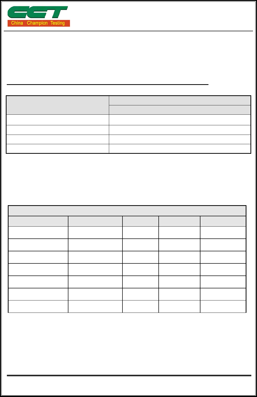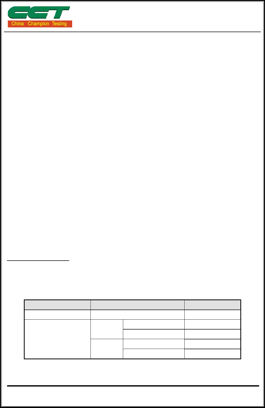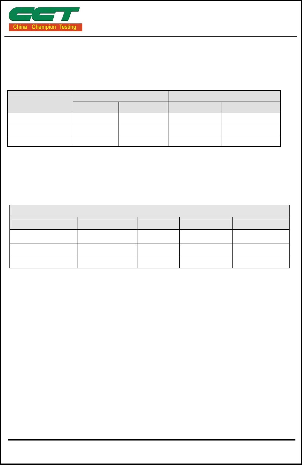 Note: 1. The test result judgment is decided by the limit of measurement standard