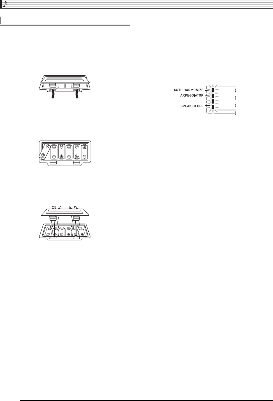 •Ориентация положительного (+) и отрицательного (–) полюсов батарей должна соответствовать обозначениям у