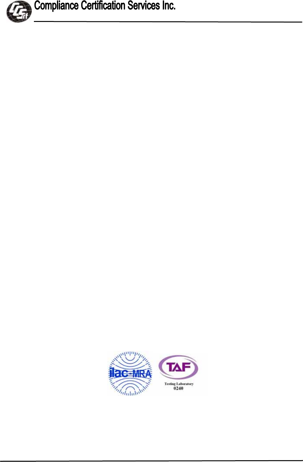 This report shall not be reproduced, except in full, without the written approval of Compliance Certification Services Inc.