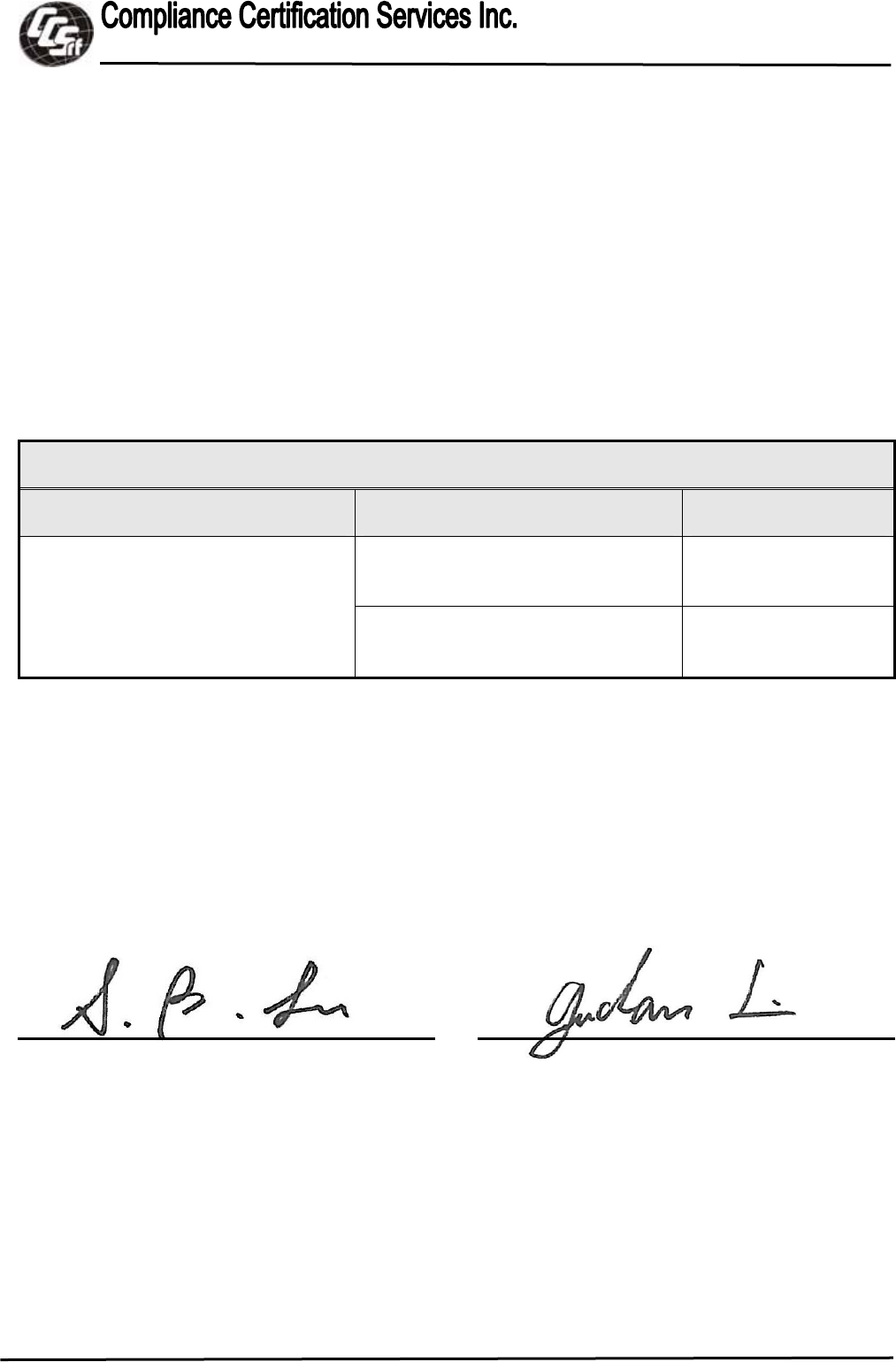 Note: This report shall not be reproduced except in full, without the written approval of Compliance Certification