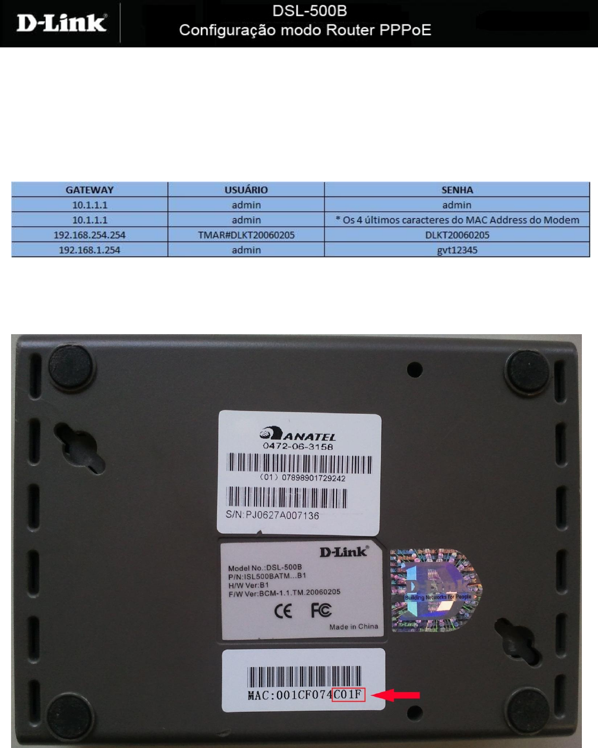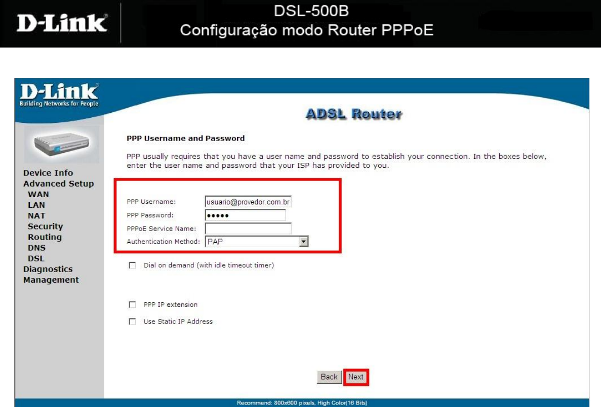 DSL-500B Configuração modo Router PPPoE