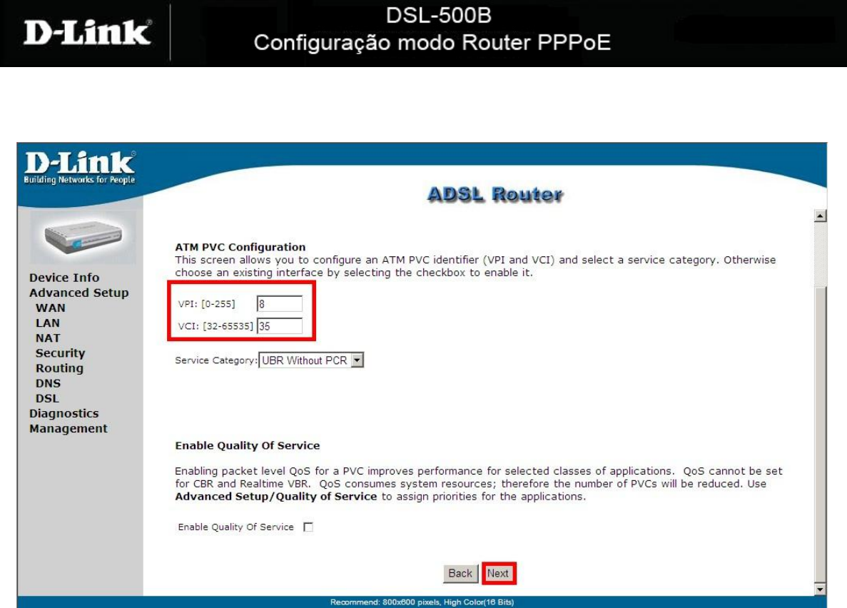 9- Sabendo os valores VPI e VCI, configure: