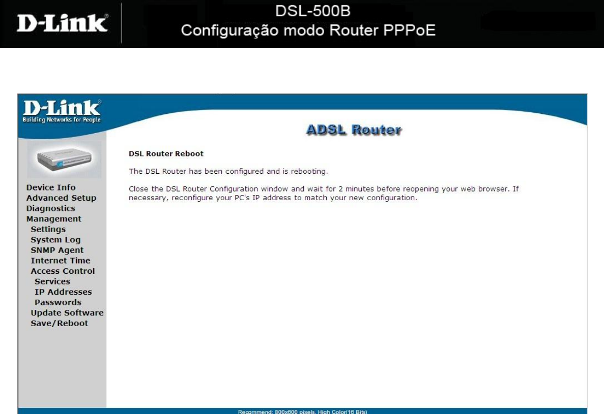 Save/Reboot para salvar e reiniciar o modem.