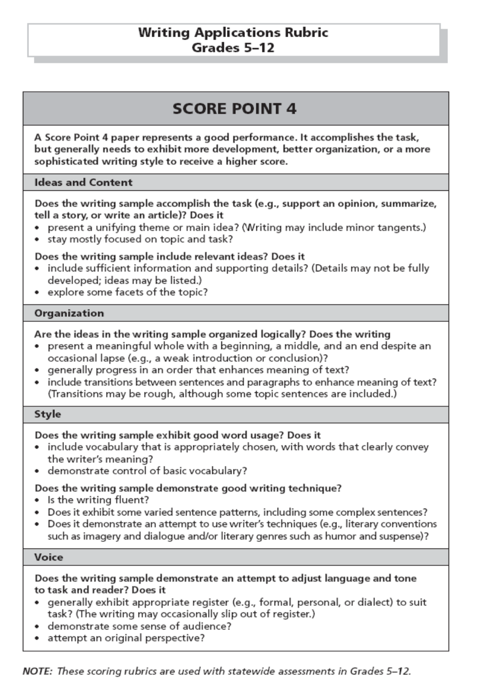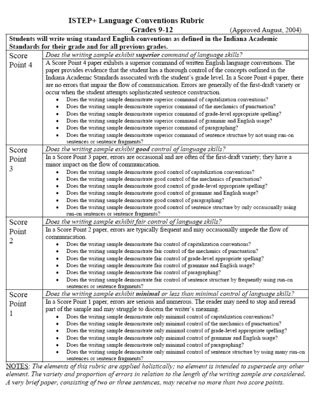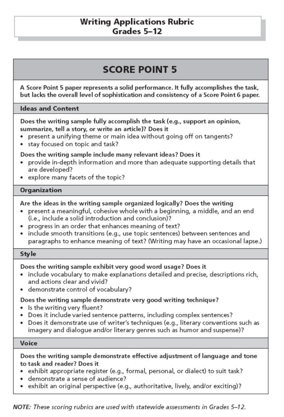 ISTEP+ Writing Applications Rubric.