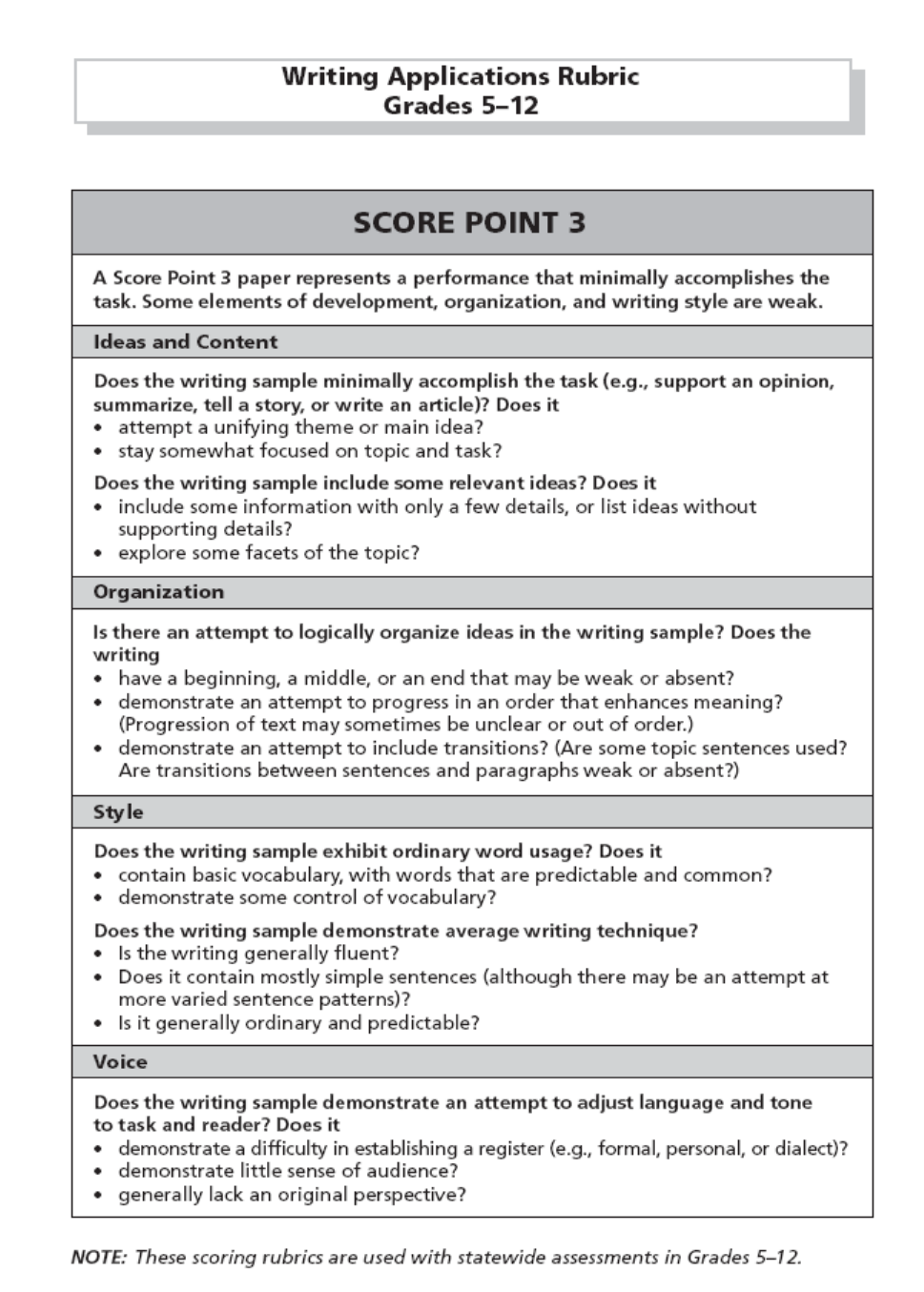 Note: A Score Point 3 paper represents a performance that minimally accomplishes the task. Some