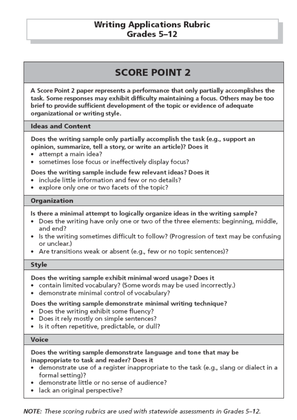 Note: A Score Point 2 paper represents a performance that only partially accomplishes the task. Some