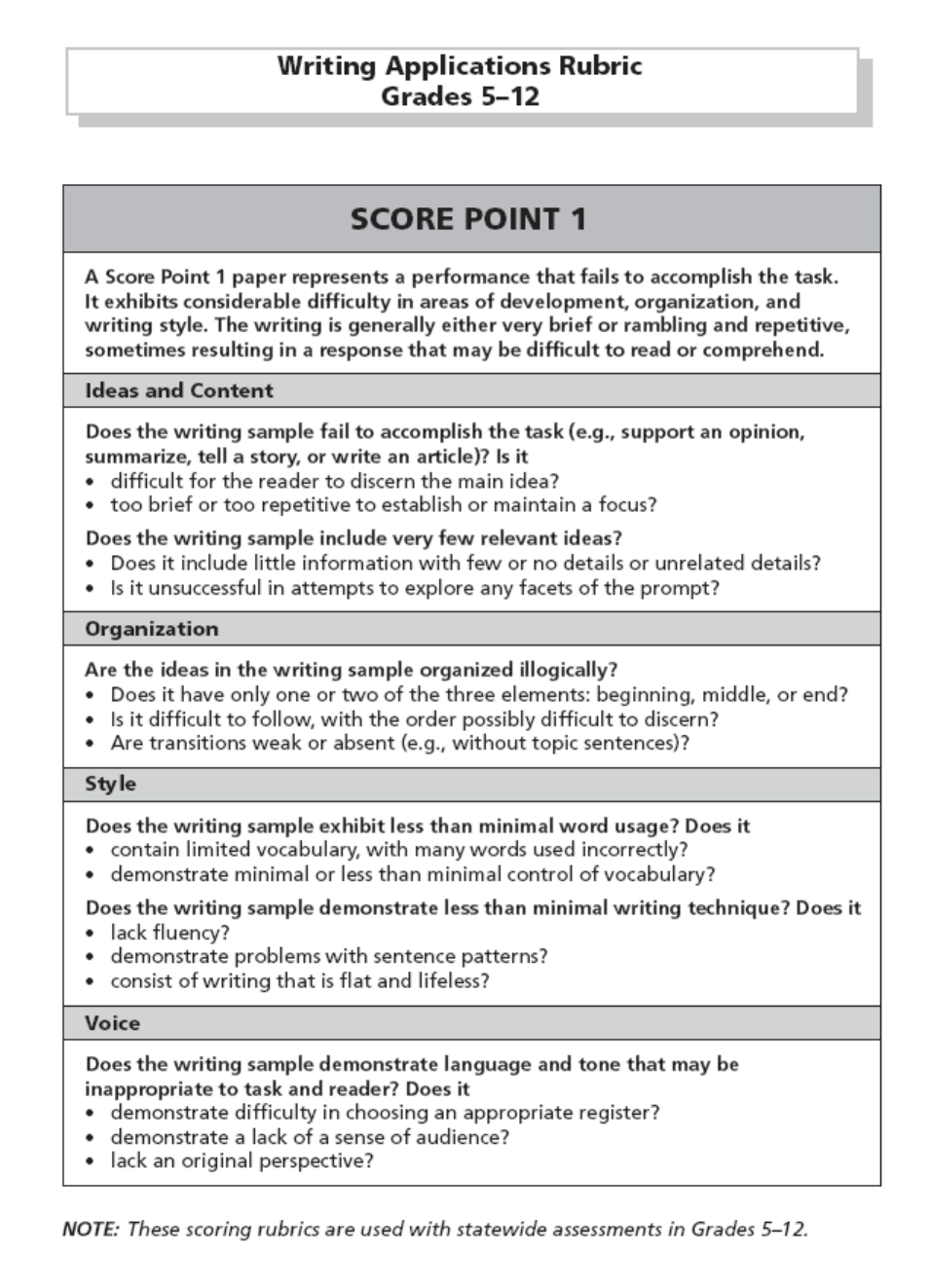 Note: A Score Point 1 paper represents a performance that fails to accomplish the task. It exhibits
