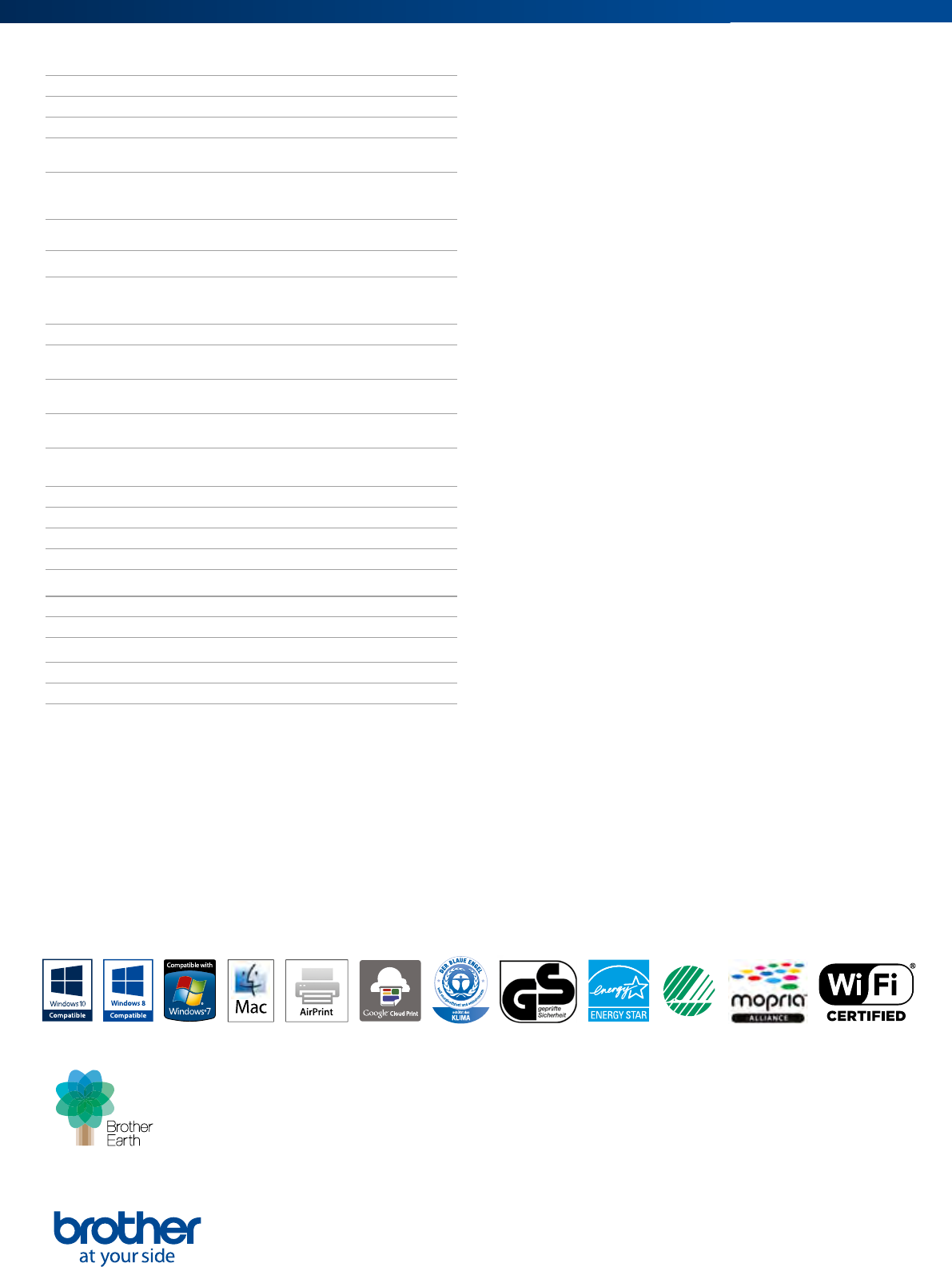 All specifications correct at time of publication, March 2016. Brother is a registered trademark of Brother Industries Ltd.