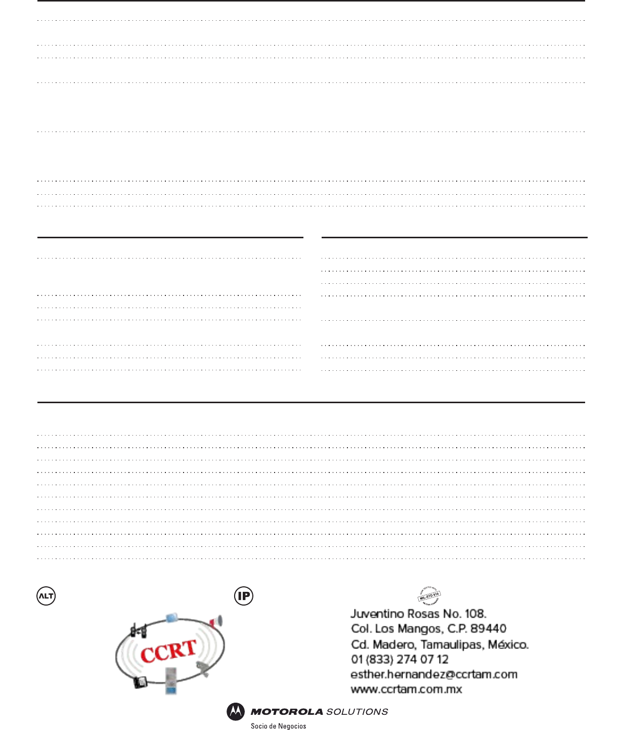 Motorola Acelerated Life Tested Cumple con el estándar IP57 Military Standar MIL-STD 810 C, D, E, F, Gd