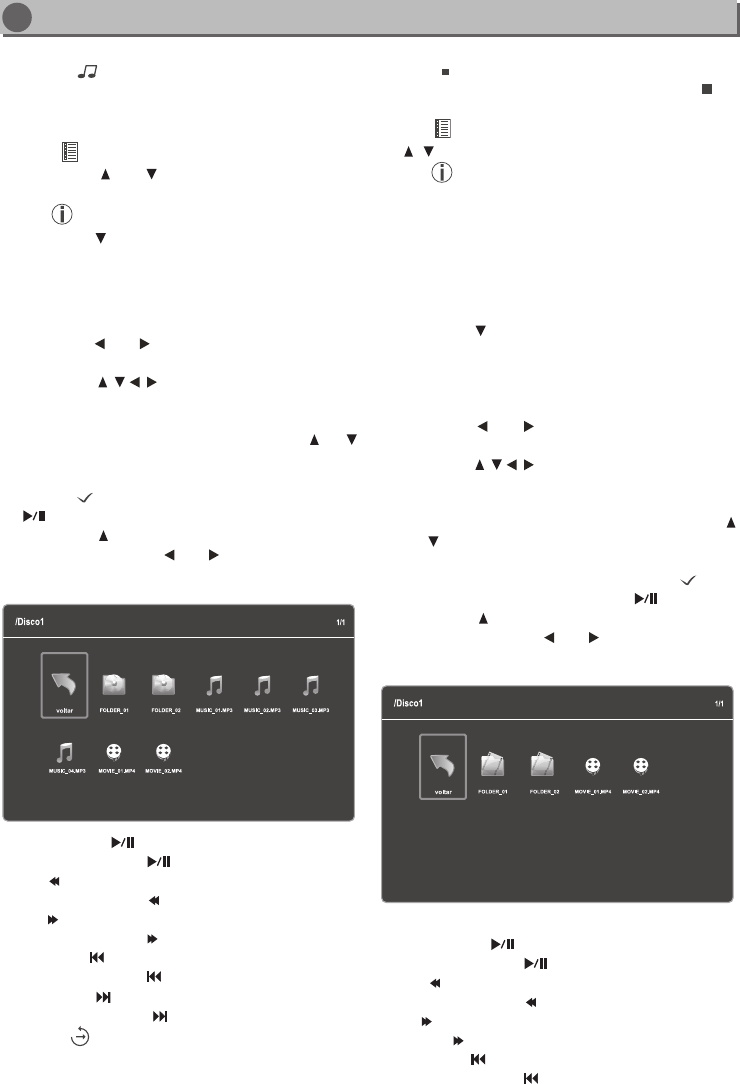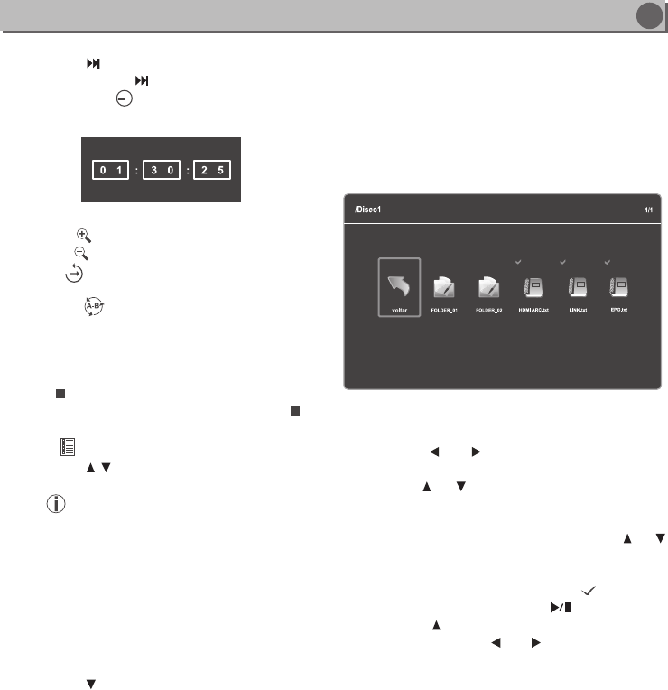 Durante a reprodução pressione as teclas ou