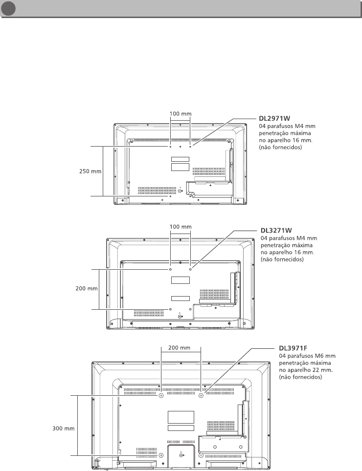 Dimensões (L x A x P) mm ........................... DL 2971W: 670 x 459 x 200 (c/ pedestal)