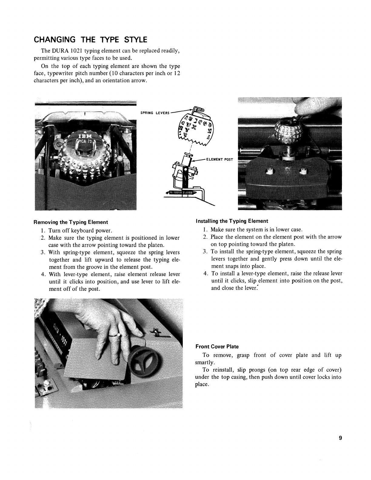 1. With keyboard power on, move typing element