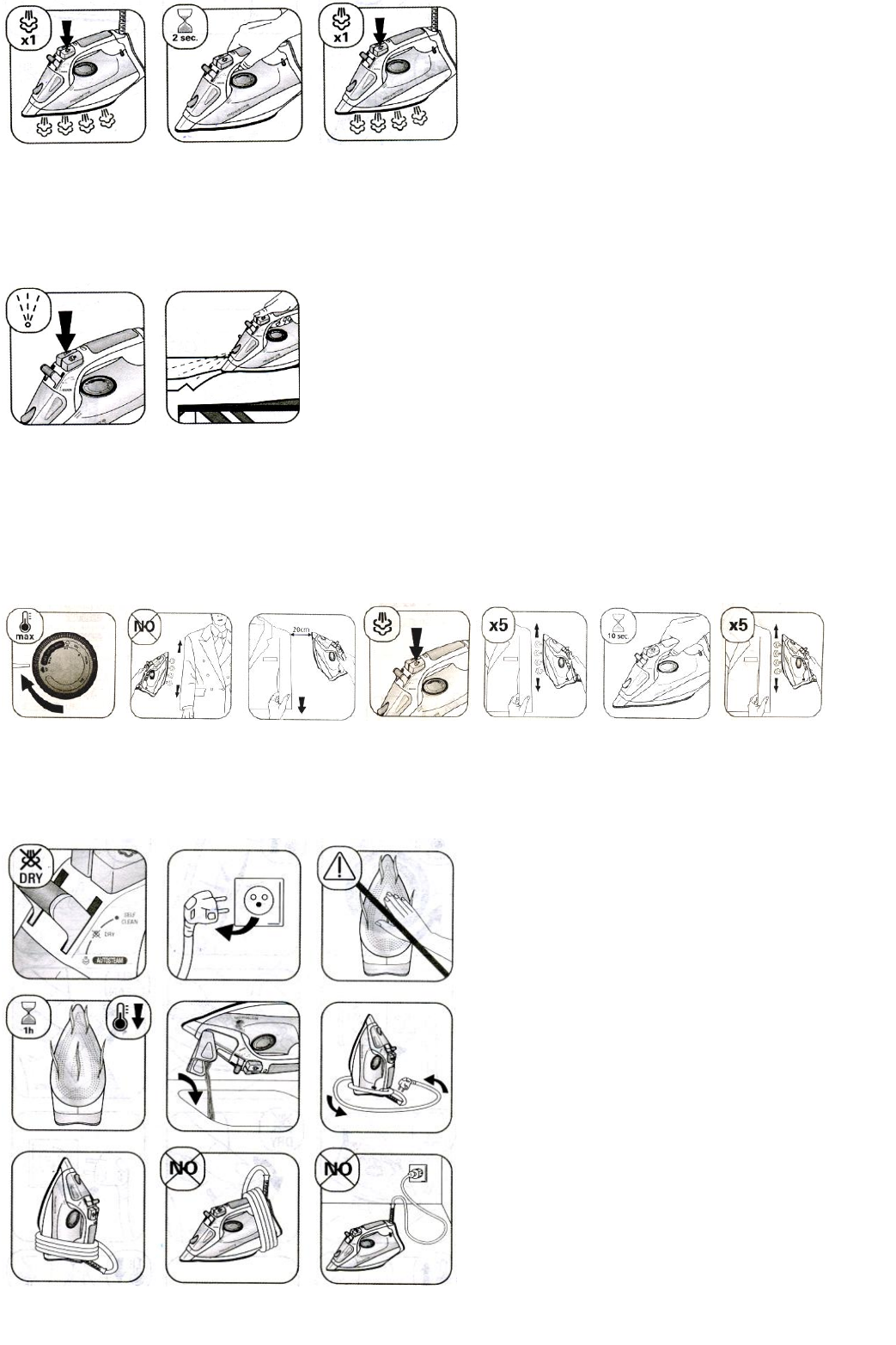 при разглаживании стойких складок на висящей одежде, занавесках и т.д. Удерживая утюг в вертикальном