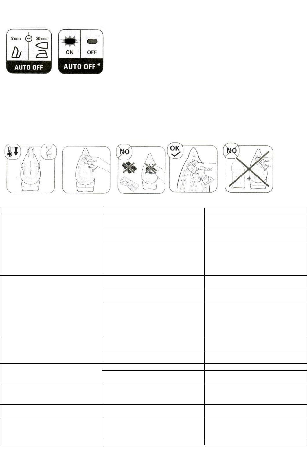 Если утюг включен, но простаивает 8 минут на подножке или 30 секунд на подошве, внутреннее устройство