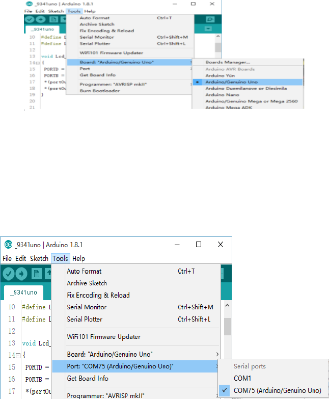 (3)Klick auf “Werkzeuge”--“Port”--“COMxx(Arduino/Genuino Uno)”